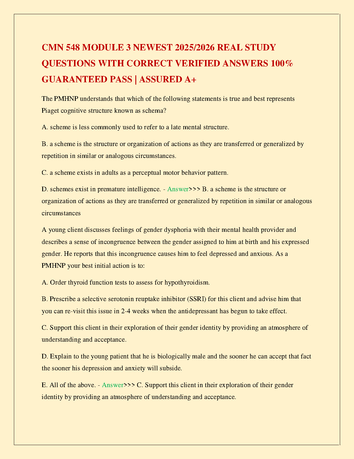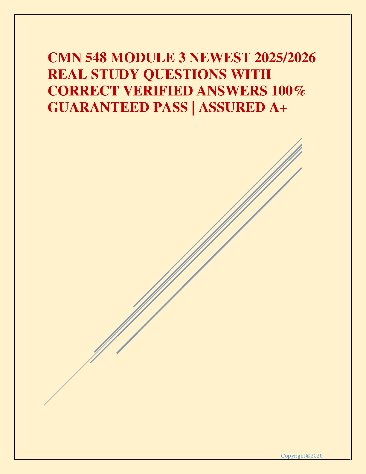 Ace your CMN 548 Module 3 exam with this brand-new study guide for the 2025/2026 academic year. This resource features a comprehensive collection of real study questions paired with 100% correct and verified answers. Designed to ensure you pass on your first attempt and avoid resits, this guide is your ultimate tool for understanding key concepts and achieving an A+ grade. Prepare with confidence and master the material effectively.