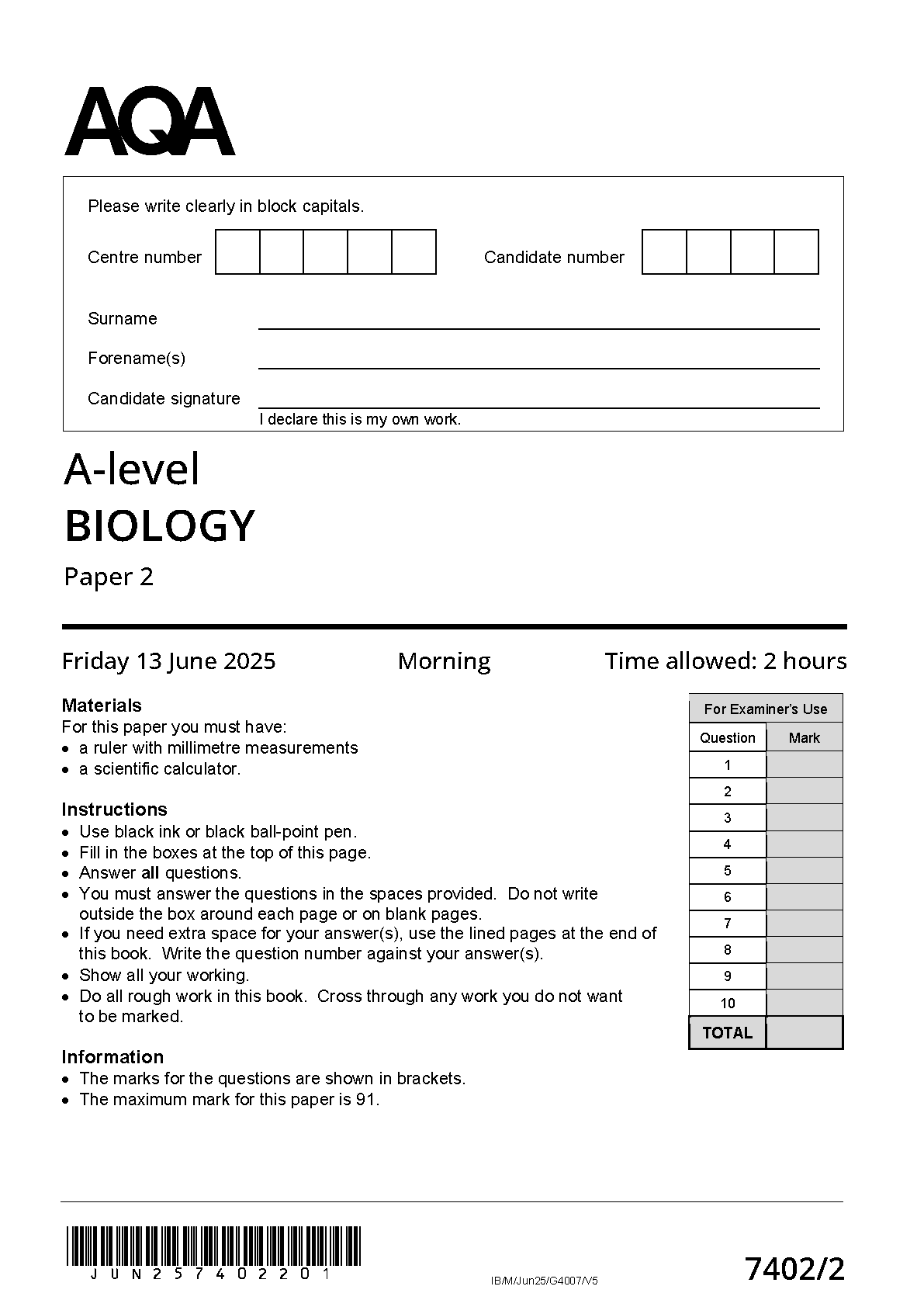 MERGED 2025 AQA A level BIOLOGY Paper 2 and Mark Scheme (7402/2)