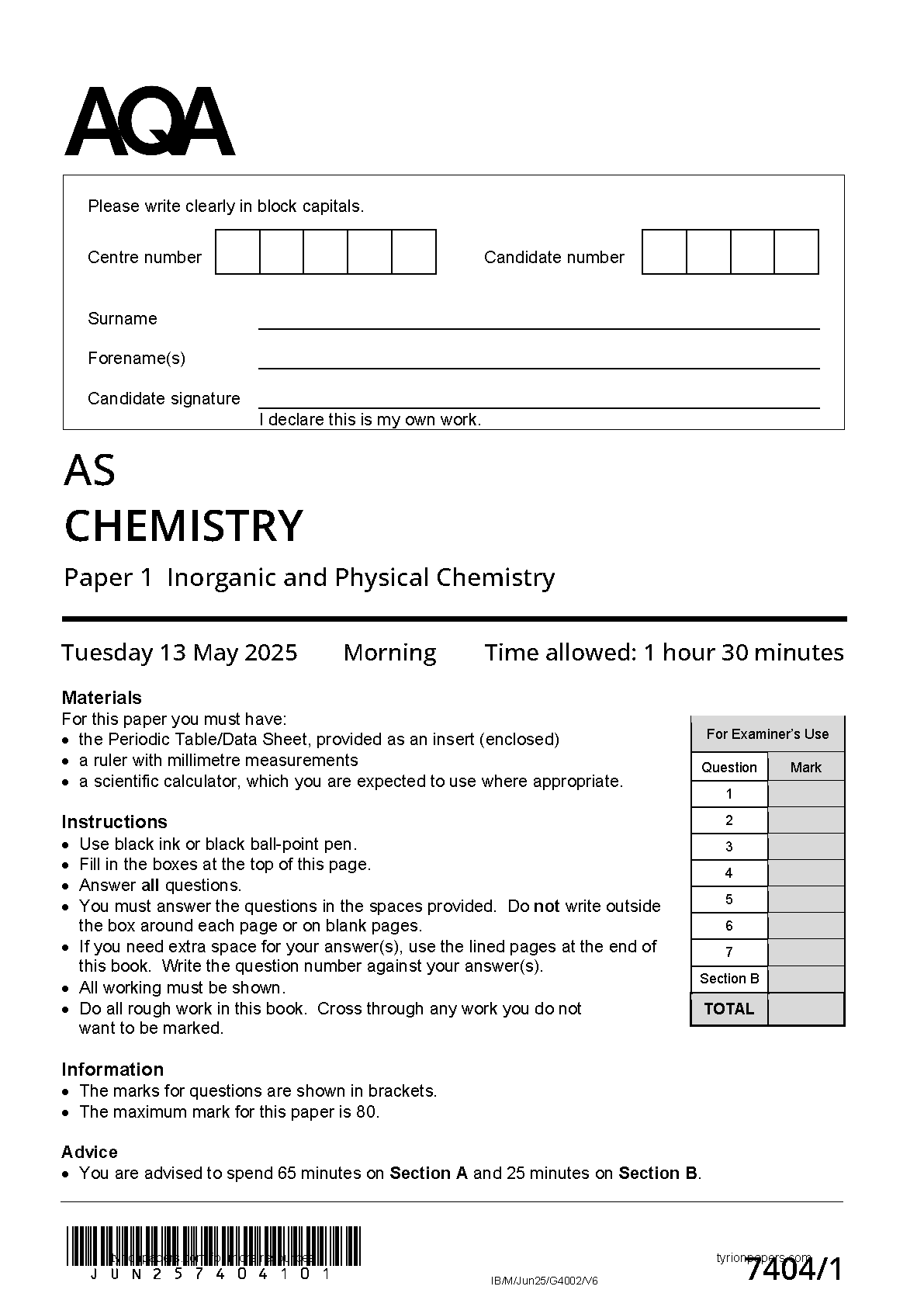 MERGED 2025 AQA AS CHEMISTRY Paper 1 and Mark Scheme (7404/1: Inorganic and Physical Chemistry)