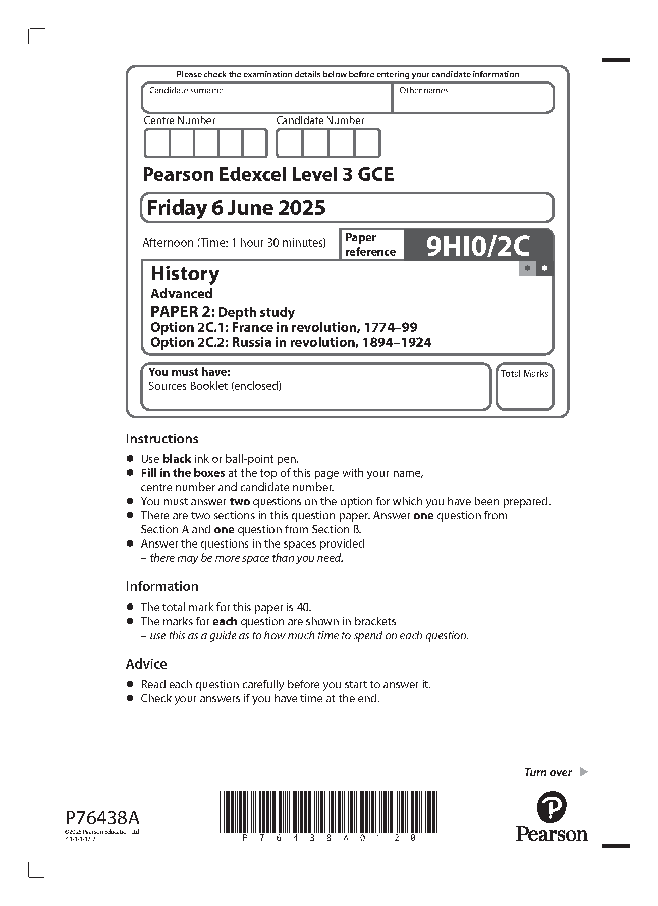 MERGED 2025 Pearson Edexcel A Level History PAPER 2 and Mark Scheme (9HI0/2C: Russia in revolution, 1894–1924)