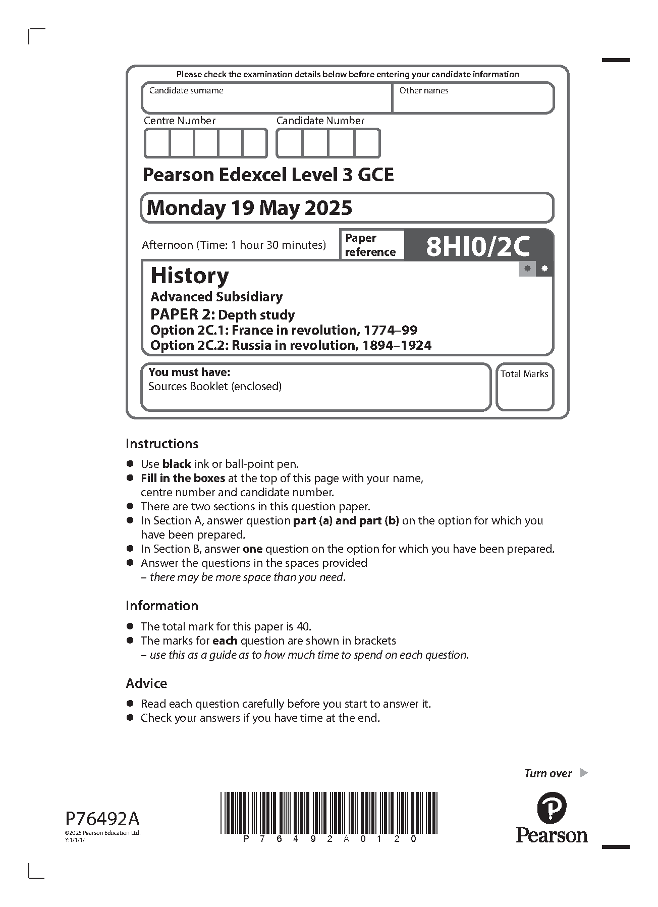 MERGED 2025 Pearson Edexcel AS Level History Paper 2 and Mark Scheme (8HI02C Russia in revolution, 1894–1924)