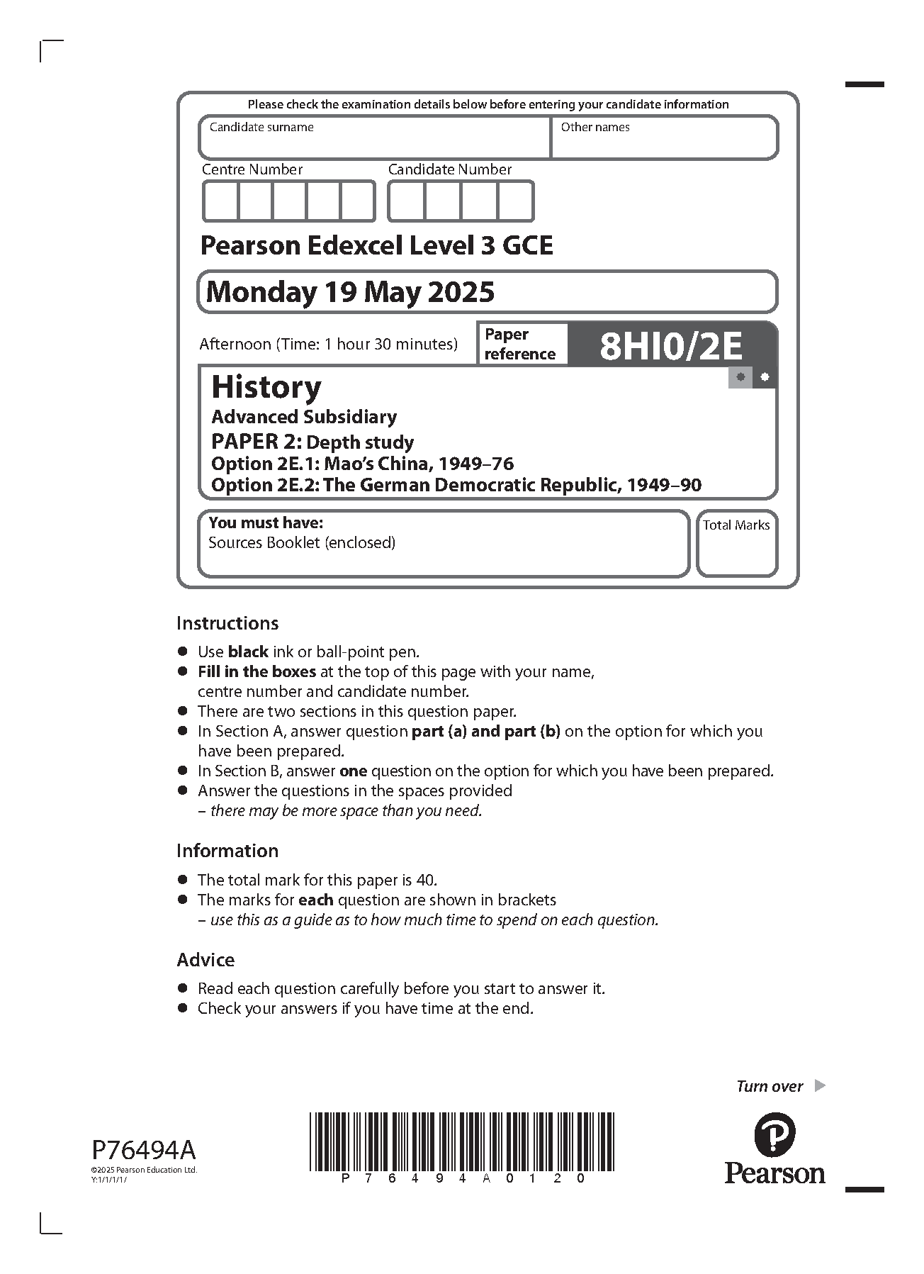 MERGED 2025 Pearson Edexcel AS Level History Paper 2 and Mark Scheme (8HI02E The German Democratic Republic, 1949–90)