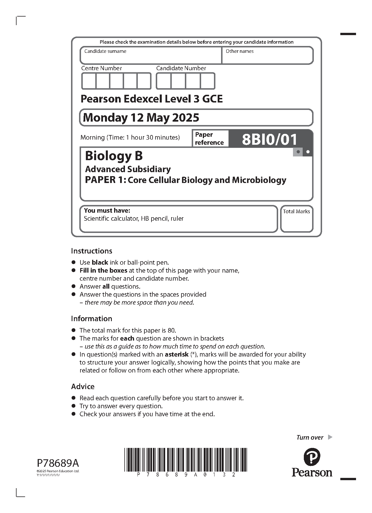 MERGED 2025 Pearson Edexcel AS Level Biology B PAPER 1 and Mark Scheme (8BI0/01: Core Cellular Biology and Microbiology)