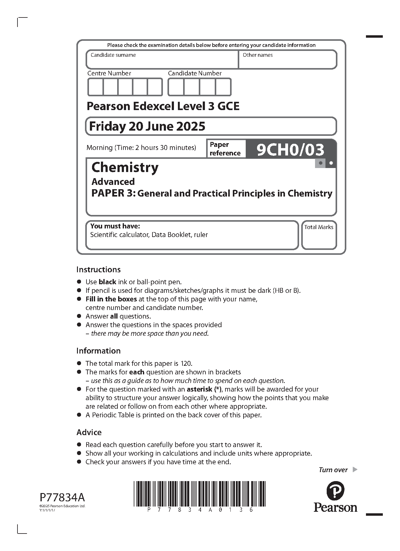 MERGED 2025 Pearson Edexcel A Level Chemistry PAPER 3 and Mark Scheme (9CH0/03: General and Practical Principles in Chemistry)