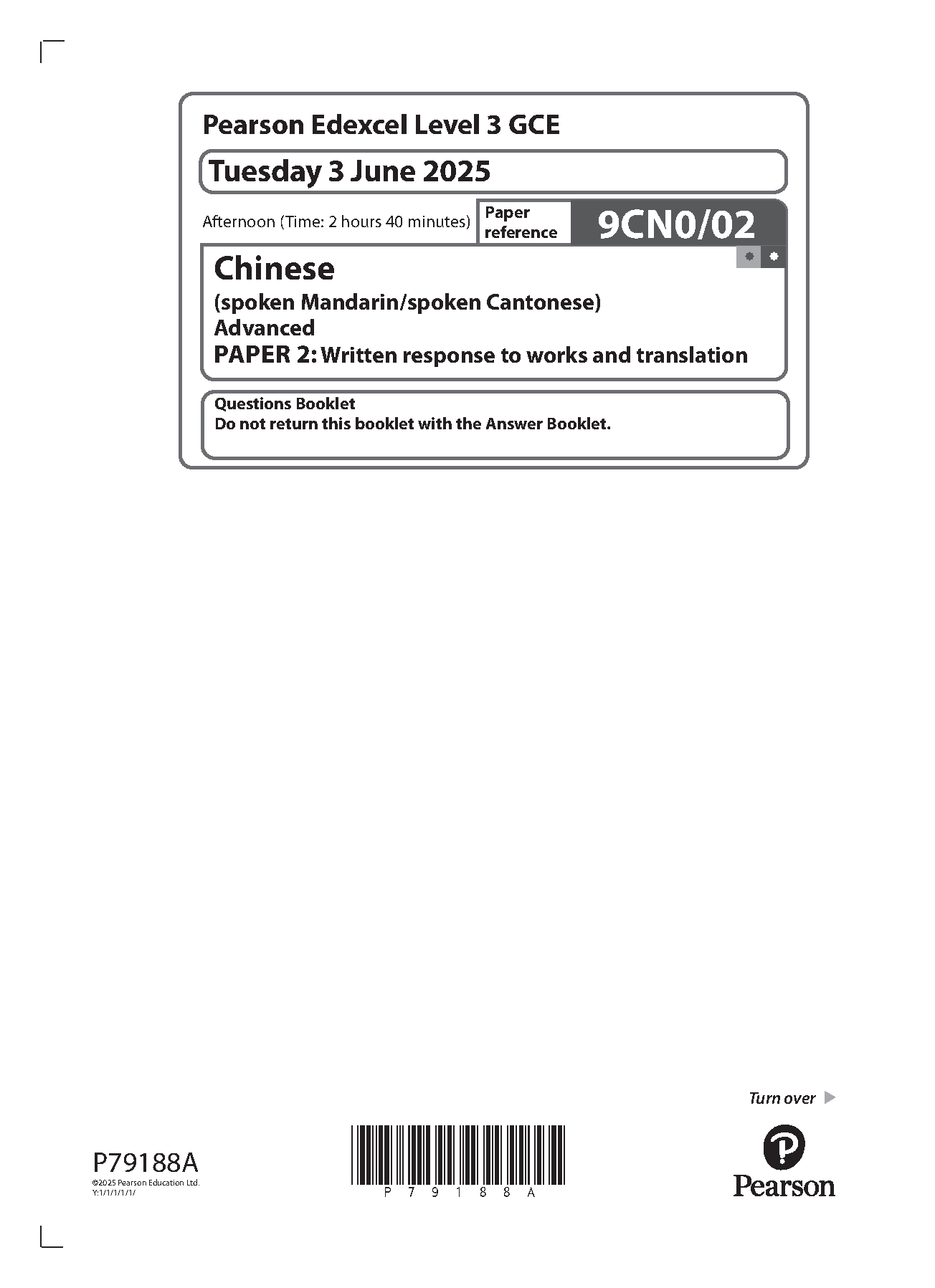 MERGED 2025 Pearson Edexcel A Level Chinese PAPER 1 and Mark Scheme (9CN0/02: Written response to works and translation)