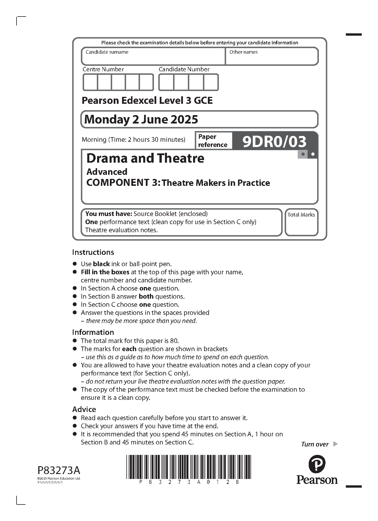 MERGED 2025 Pearson Edexcel A Level Drama and Theatre PAPER 3 and Mark Scheme (9DR0/03: Theatre Makers in Practice)