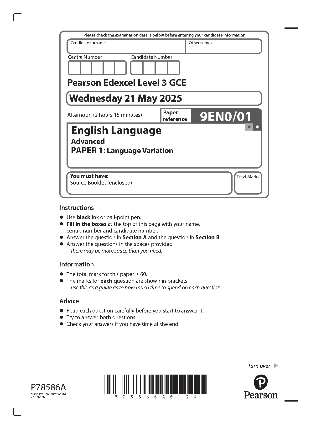 MERGED 2025 Pearson Edexcel A Level English Language Paper 1 and Mark Scheme (9EN0/01: Language Variation)