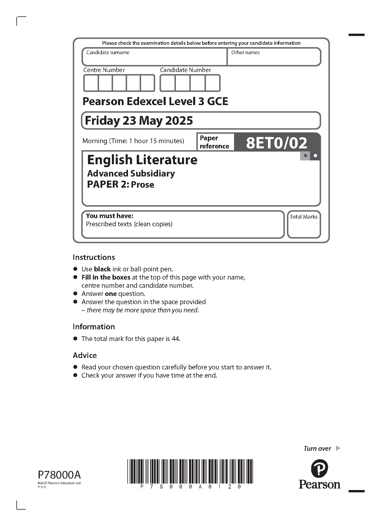 MERGED 2025 Pearson Edexcel AS Level English Literature Paper 2 and Mark Scheme (8ET0/02: Prose)