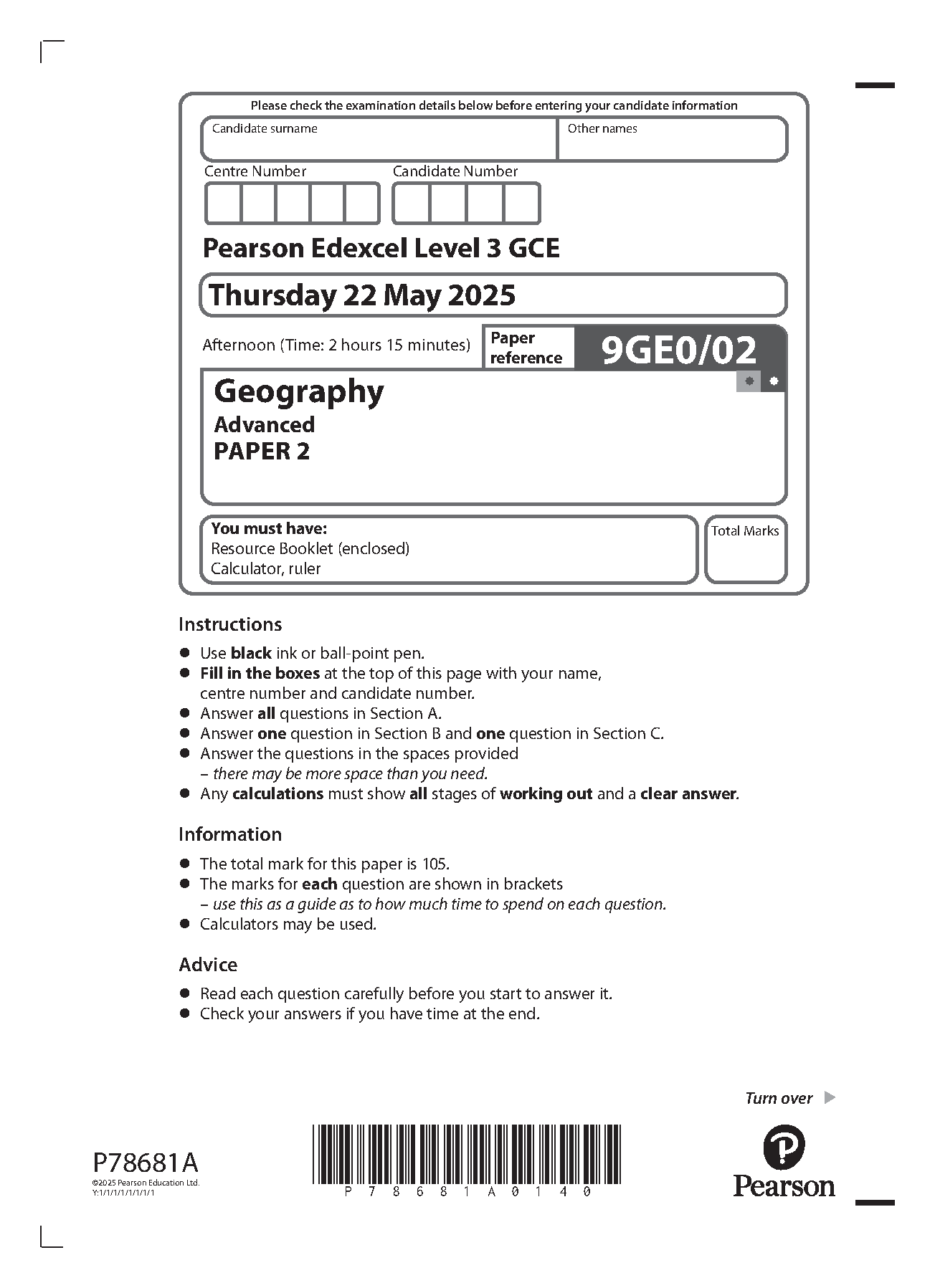 MERGED 2025 Pearson Edexcel A Level Geography Paper 2 and Mark Scheme (9GE0/02)