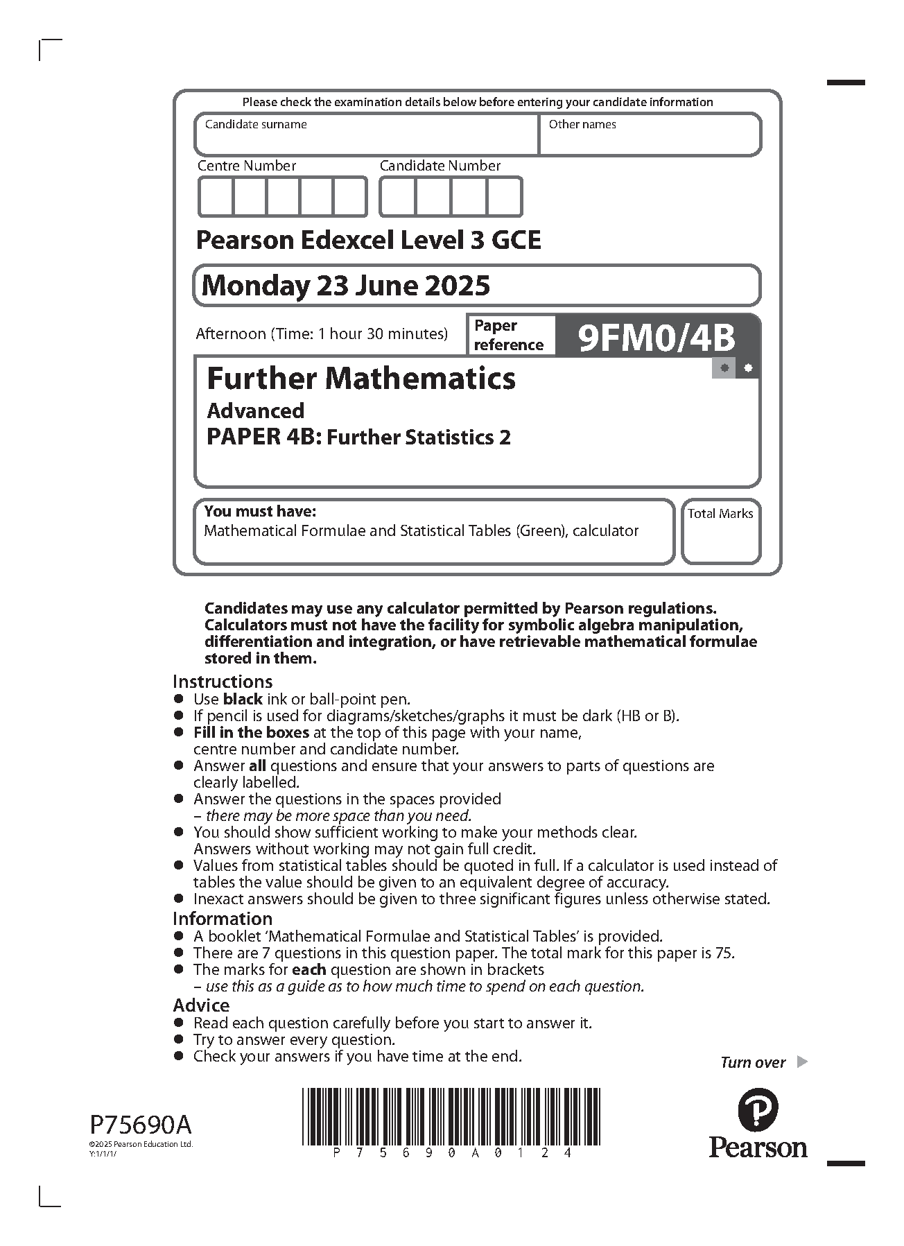 MERGED 2025 Pearson Edexcel A Level Further Mathematics PAPER 4B and Mark Scheme (9FM0/4B: Further Statistics 2)