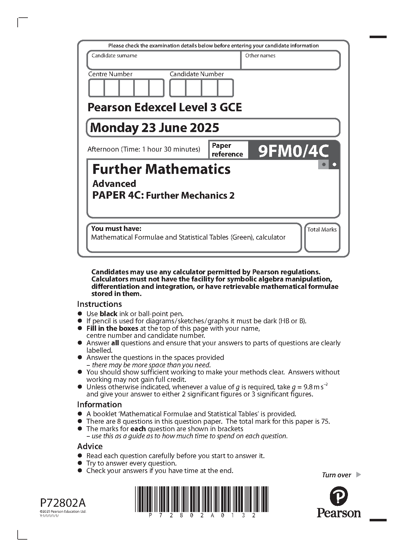 MERGED 2025 Pearson Edexcel A Level Further Mathematics PAPER 4C and Mark Scheme (9FM0/4C: Further Mechanics 2)