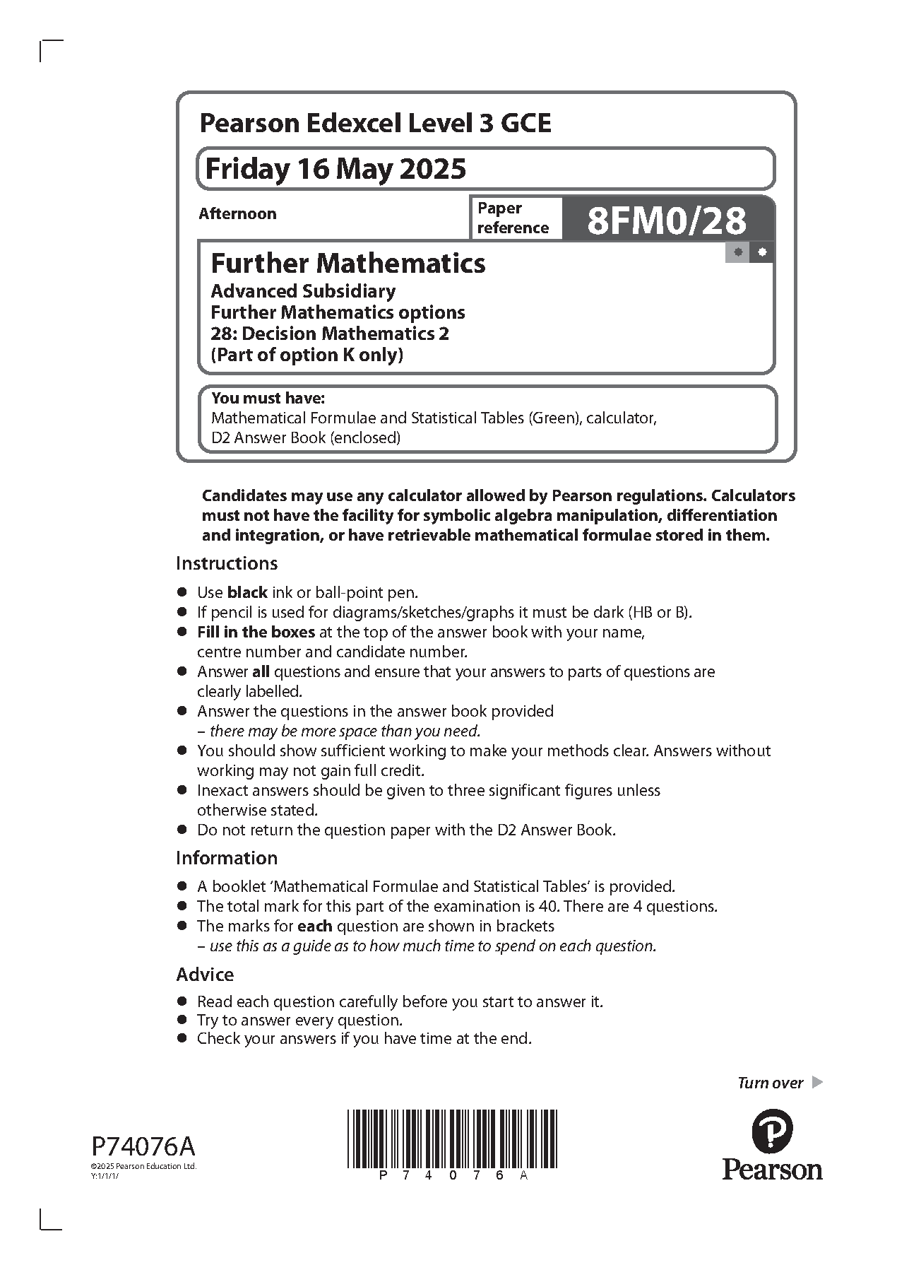 MERGED 2025 Pearson Edexcel AS Level Further Mathematics Paper 28 and Mark Scheme (8FM0/28: Decision Mathematics 2)
