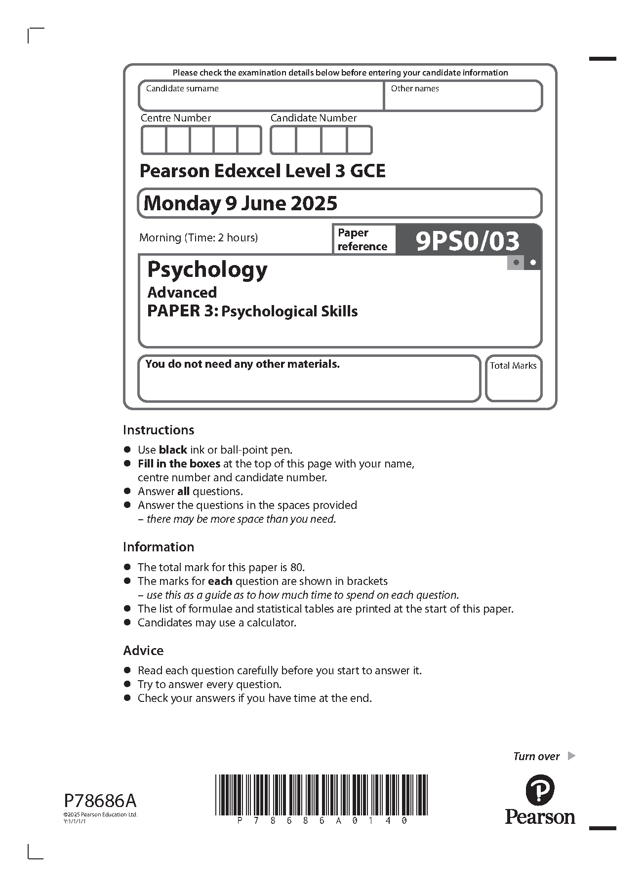 MERGED 2025 Pearson Edexcel A Level Psychology PAPER 3 and Mark Scheme (9PS0/03: Psychological Skills)