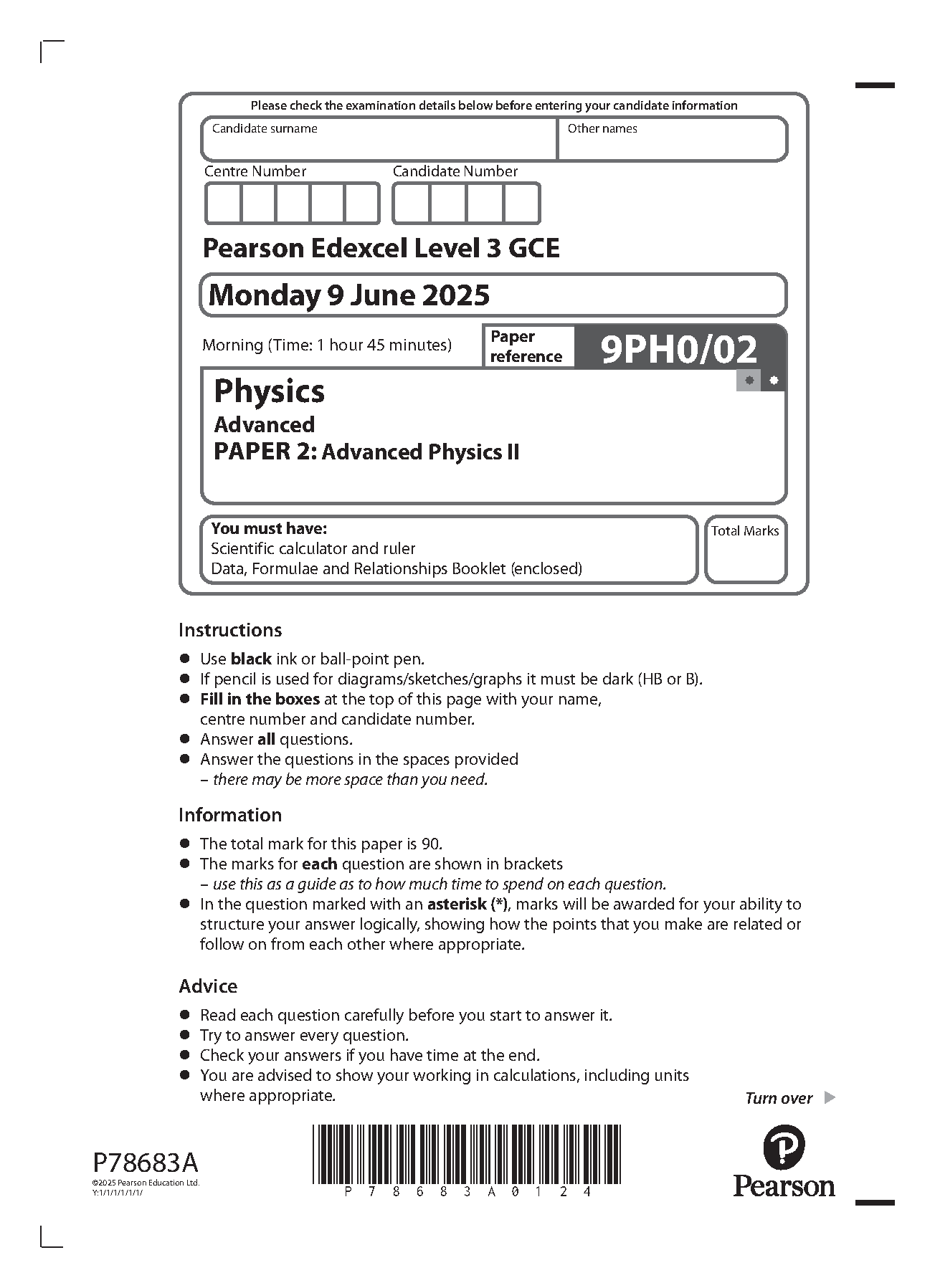 MERGED 2025 Pearson Edexcel A Level Physics Paper 2 and Mark Scheme (9PH0/02: Advanced Physics II)