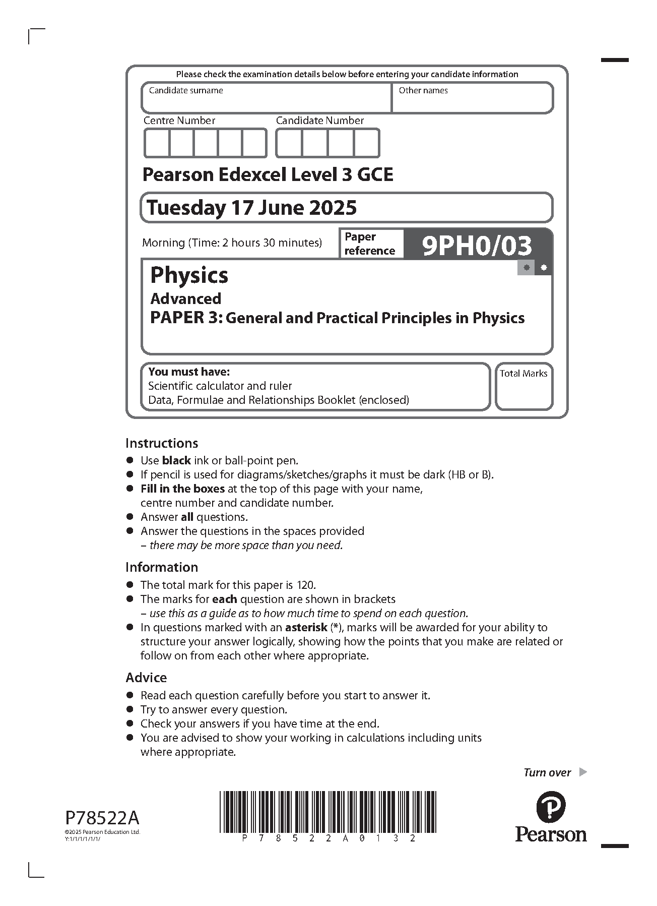 MERGED 2025 Pearson Edexcel A Level Physics Paper 3 and Mark Scheme (9PH0/03: General and Practical Principles in Physics)