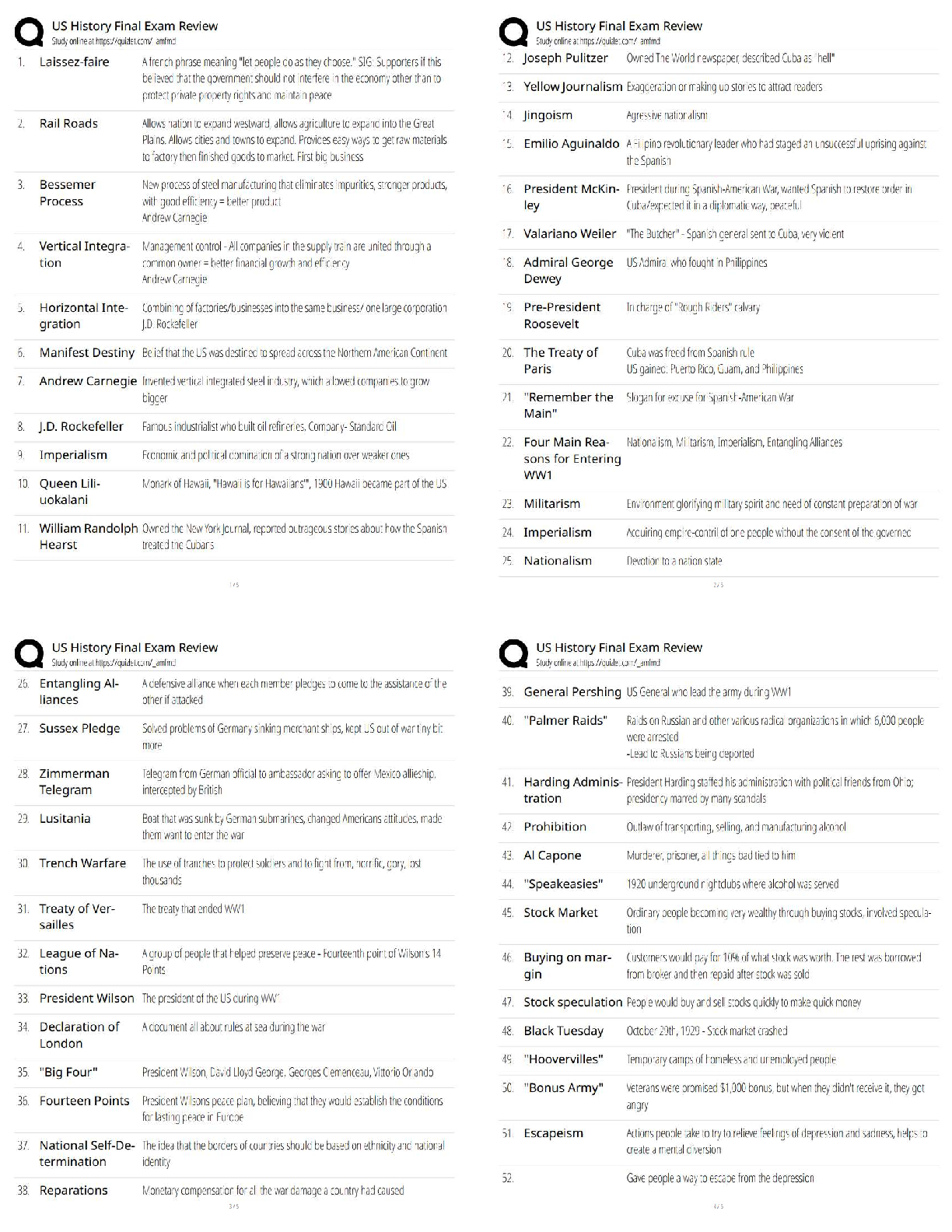 Master your US History final exam with this essential 2025/2026 review guide! This comprehensive resource covers 52 critical terms and concepts, from Laissez-faire economics and the Gilded Age to the causes of WWI and the onset of the Great Depression. Each term is clearly defined to ensure you grasp the key information needed to succeed. Perfect for students aiming to pass their exams on the first attempt and avoid costly resits, this study guide simplifies complex topics like Manifest Destiny, the Treaty of Versailles, and the Stock Market Crash. Download now to streamline your study process and walk into your final exam with confidence!