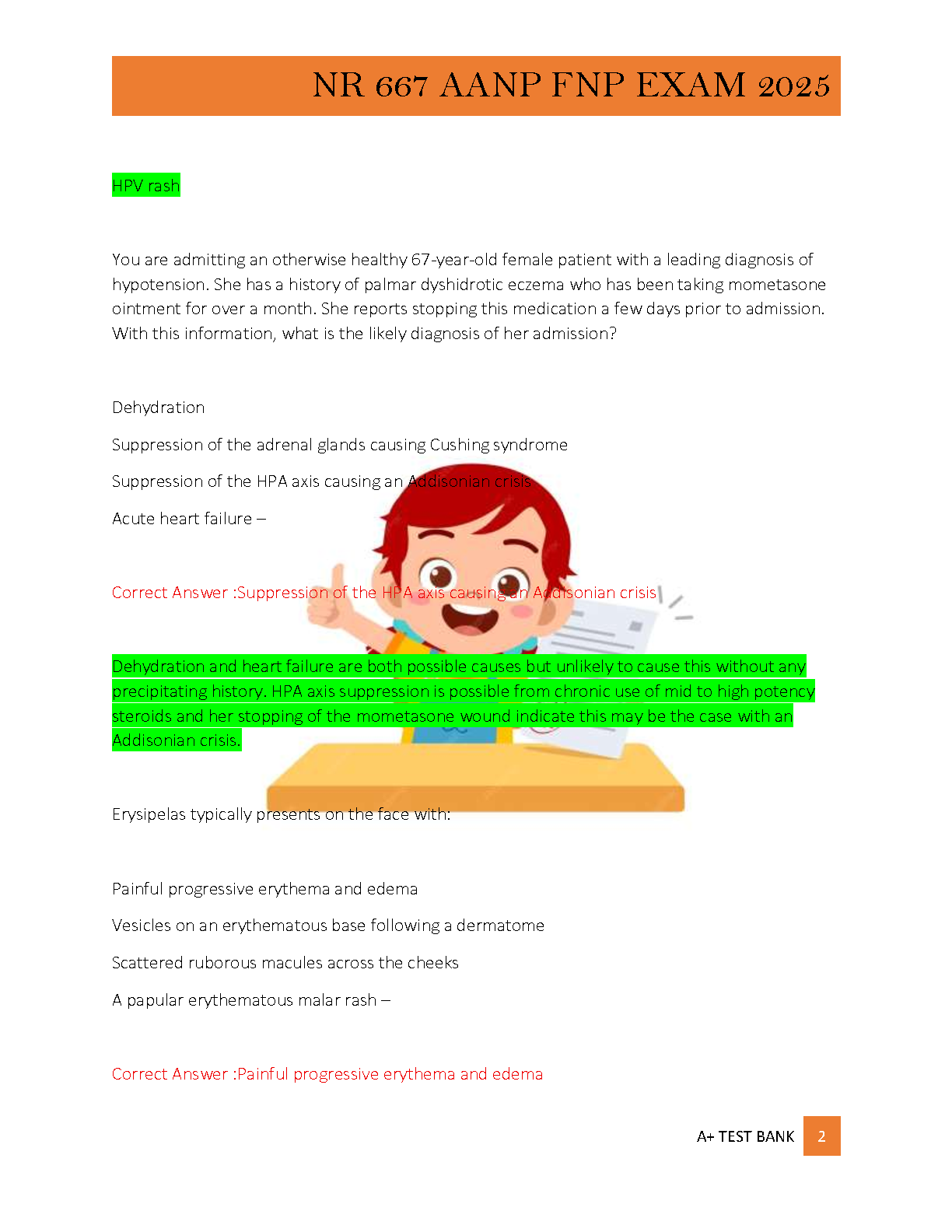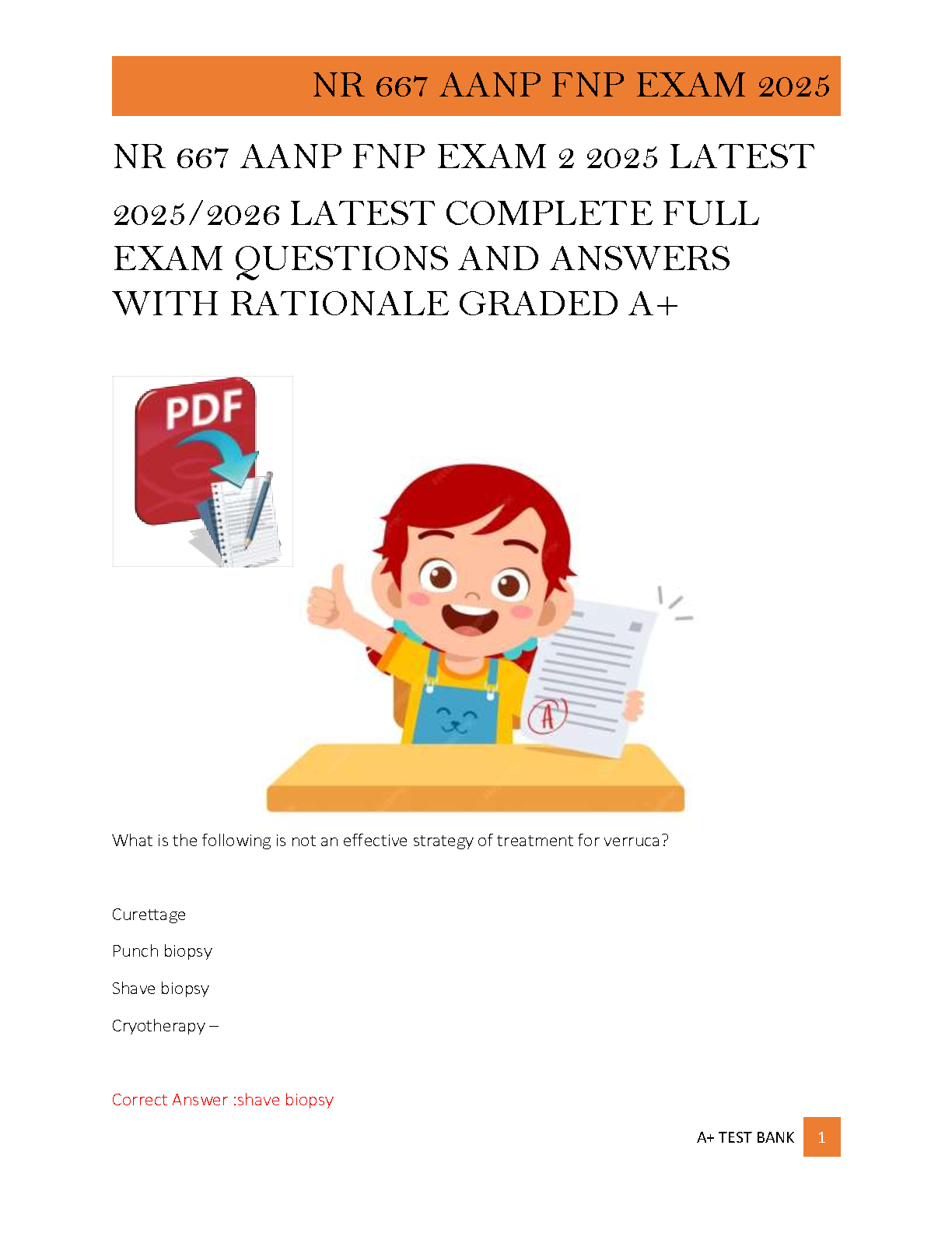Ace your NR 667 AANP FNP Exam 2 with our latest 2025/2026 test bank. This comprehensive study guide is meticulously designed to help you pass on your first attempt. It features a complete collection of exam-style questions, verified answers, and detailed rationales for every question. Master key concepts, boost your confidence, and achieve that A+ grade. Stop stressing about resits and start studying smarter with our proven resource.