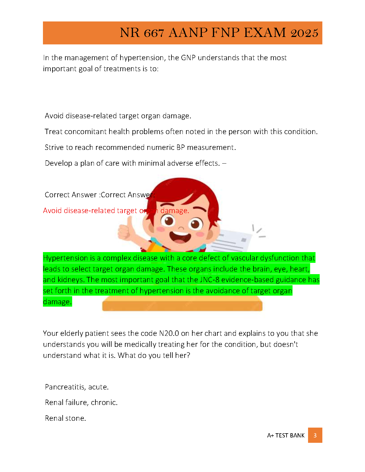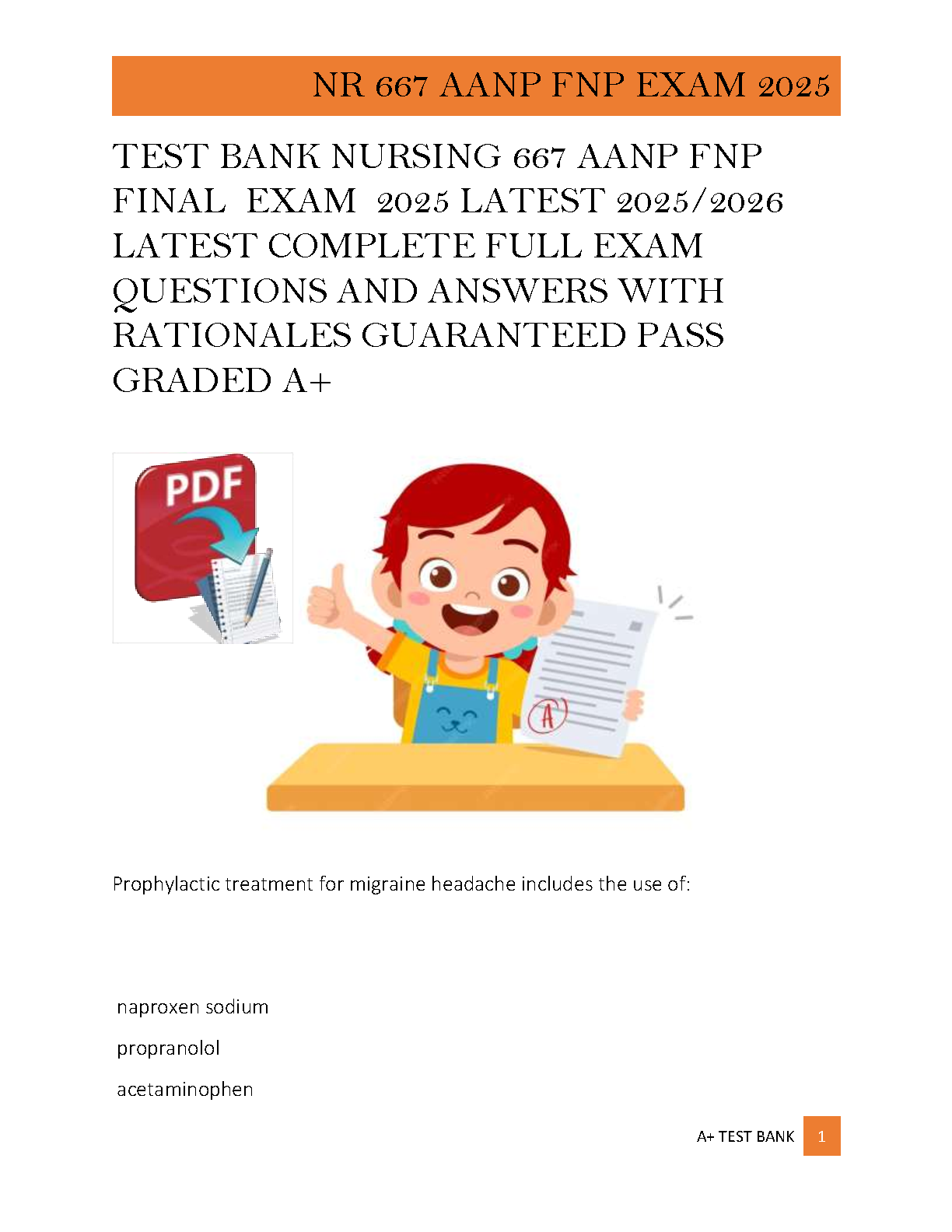 Ace your NR 667 AANP FNP Final Exam with our latest 2025/2026 test bank. This comprehensive resource is designed to help you achieve an A+ grade and pass on your first attempt. It features a complete collection of exam questions, verified answers, and detailed rationales for every question. Master the course material, understand the reasoning behind each answer, and walk into your exam with confidence. This is the ultimate study guide for success in your Family Nurse Practitioner program.
