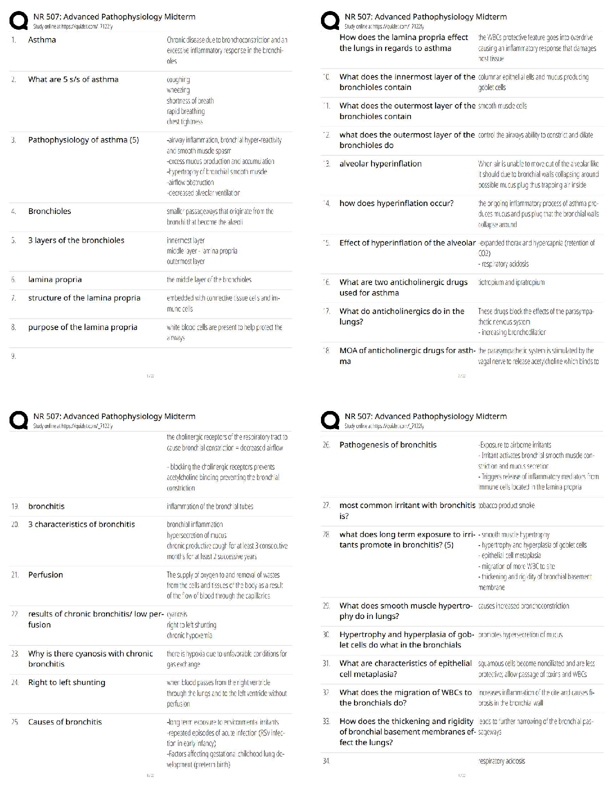 Ace your NR 507 Advanced Pathophysiology Midterm with our comprehensive test bank! This Q&A guide is meticulously aligned with the 9th Edition of 'Pathophysiology: The Biologic Basis for Disease in Adults and Children' by Kathryn L. McCance and Sue E. Huether. Dive deep into critical respiratory topics including the pathophysiology of asthma, the intricacies of bronchitis, cellular changes like metaplasia, and the mechanisms of hyperinflation. Each question is paired with a detailed, accurate answer to ensure you grasp the core concepts and are fully prepared to excel on your exam. Stop cramming and start understanding with this essential study tool.