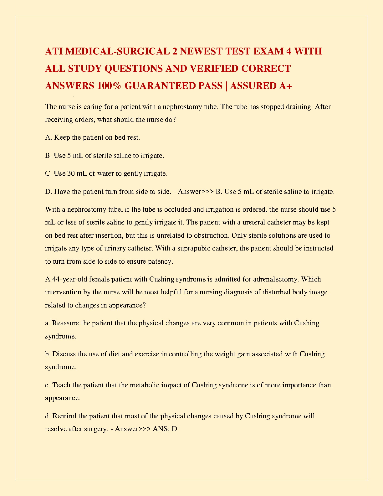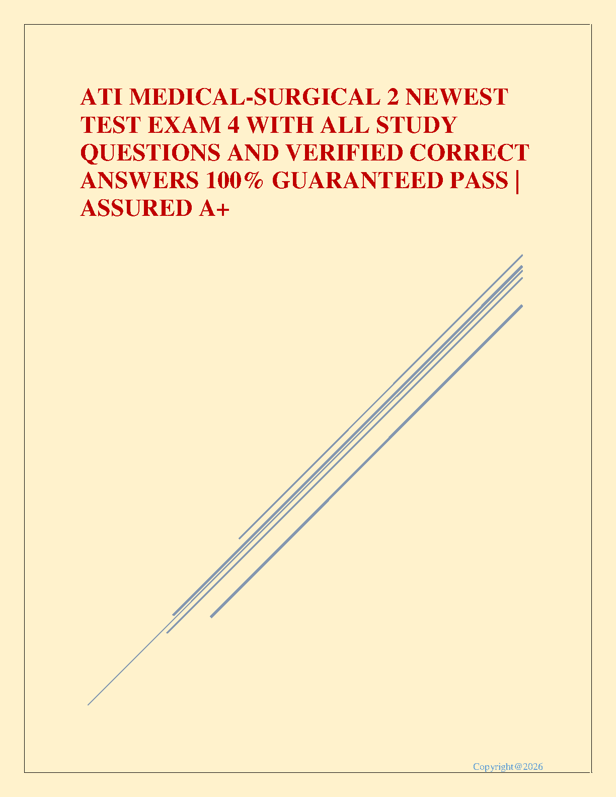 Master the ATI Medical-Surgical 2 curriculum and ace your Exam 4 with our latest 2025/2026 test bank. This comprehensive resource provides a full set of study questions paired with 100% verified and accurate answers. Designed specifically for nursing students aiming for an A+, this guide is your key to understanding complex topics, passing on your first attempt, and avoiding resits. Boost your confidence and achieve academic excellence with this essential study tool.