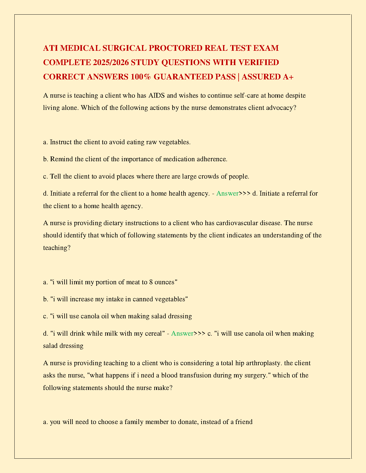 ATI Medical Surgical Proctored Exam 2025/2026: Comprehensive Study Guide with Verified Questions and Answers for a Guaranteed A+