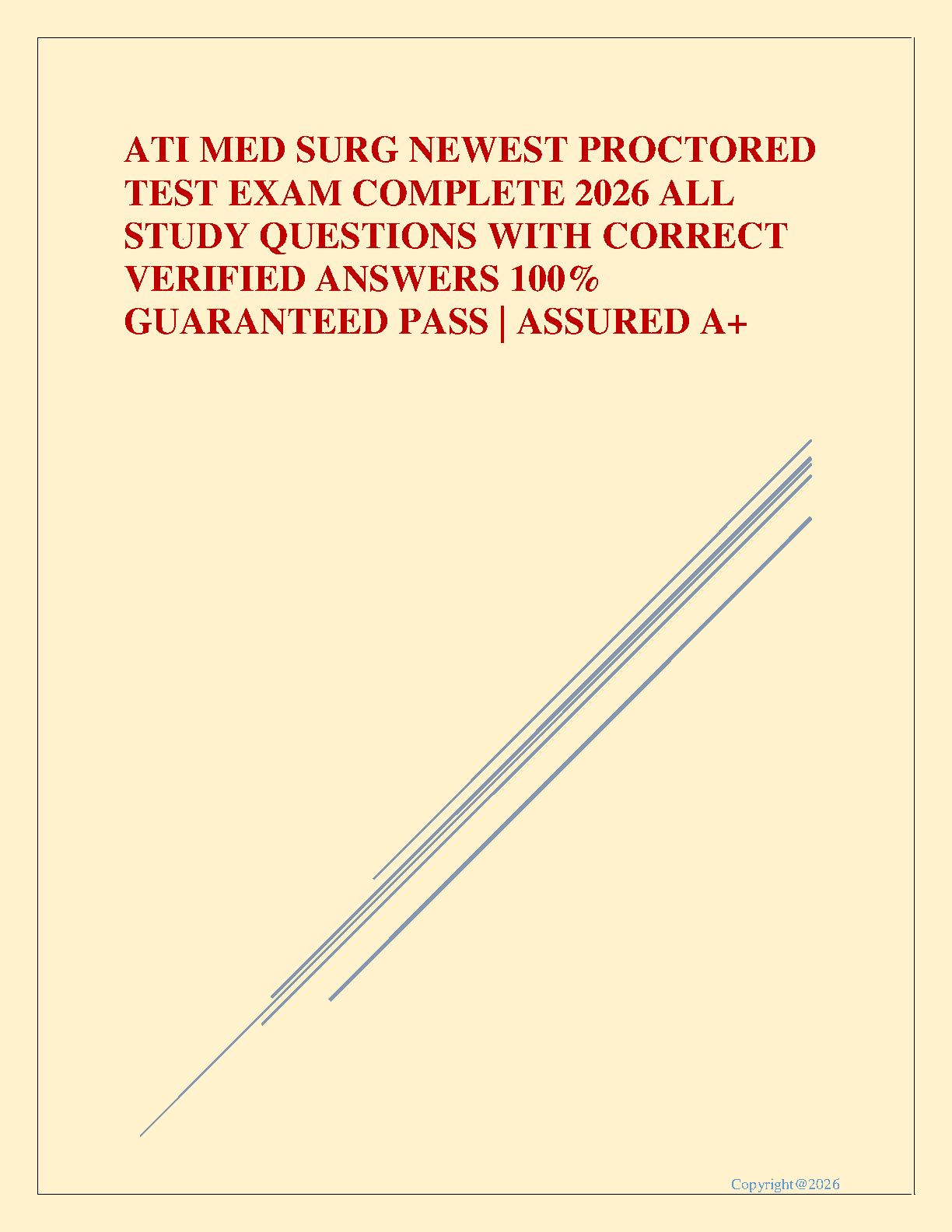Get ready to ace your ATI Medical-Surgical Proctored Exam with our latest 2026 test bank. This comprehensive study guide is packed with a complete set of study questions and 100% correct, verified answers. Designed to help you achieve A+ results and pass on your first attempt, this resource covers all essential topics to build your confidence. Secure your success with this ultimate Med Surg exam prep tool and avoid the stress of resits.