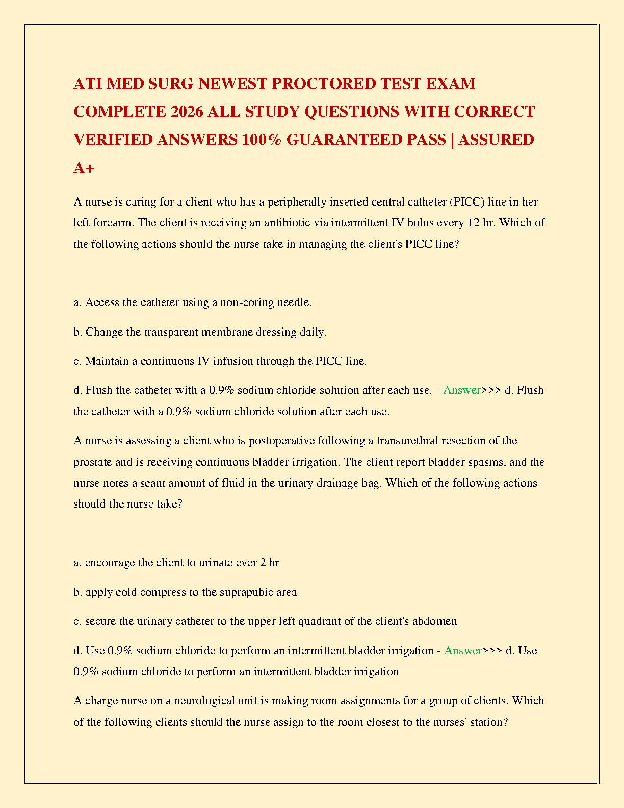 ATI Med Surg Proctored Exam 2026 Test Bank: Complete Questions & Verified Answers for A+ Results