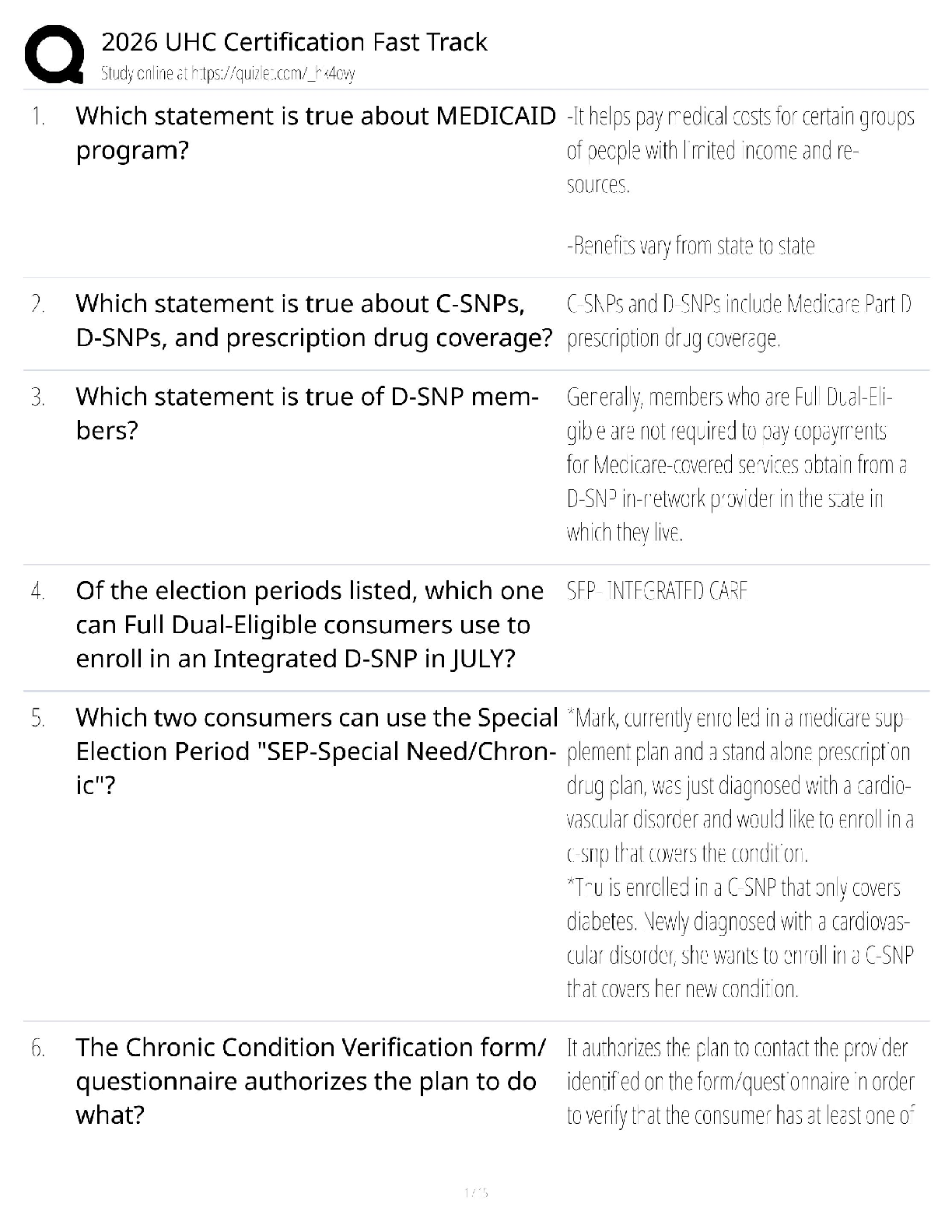 Prepare to pass your 2026 UnitedHealthCare (UHC) Certification on the first attempt with our comprehensive Fast Track study guide. This resource is loaded with the most current exam questions and expertly verified answers for the 2025/2026 certification season. Gain a deep understanding of crucial topics including MEDICAID, C-SNPs, D-SNPs, prescription drug coverage, and Special Election Periods (SEP). This guide is specifically designed for efficient and effective learning, making it the perfect tool to secure your certification without the stress of resits. Download now and accelerate your career as a certified UHC agent!