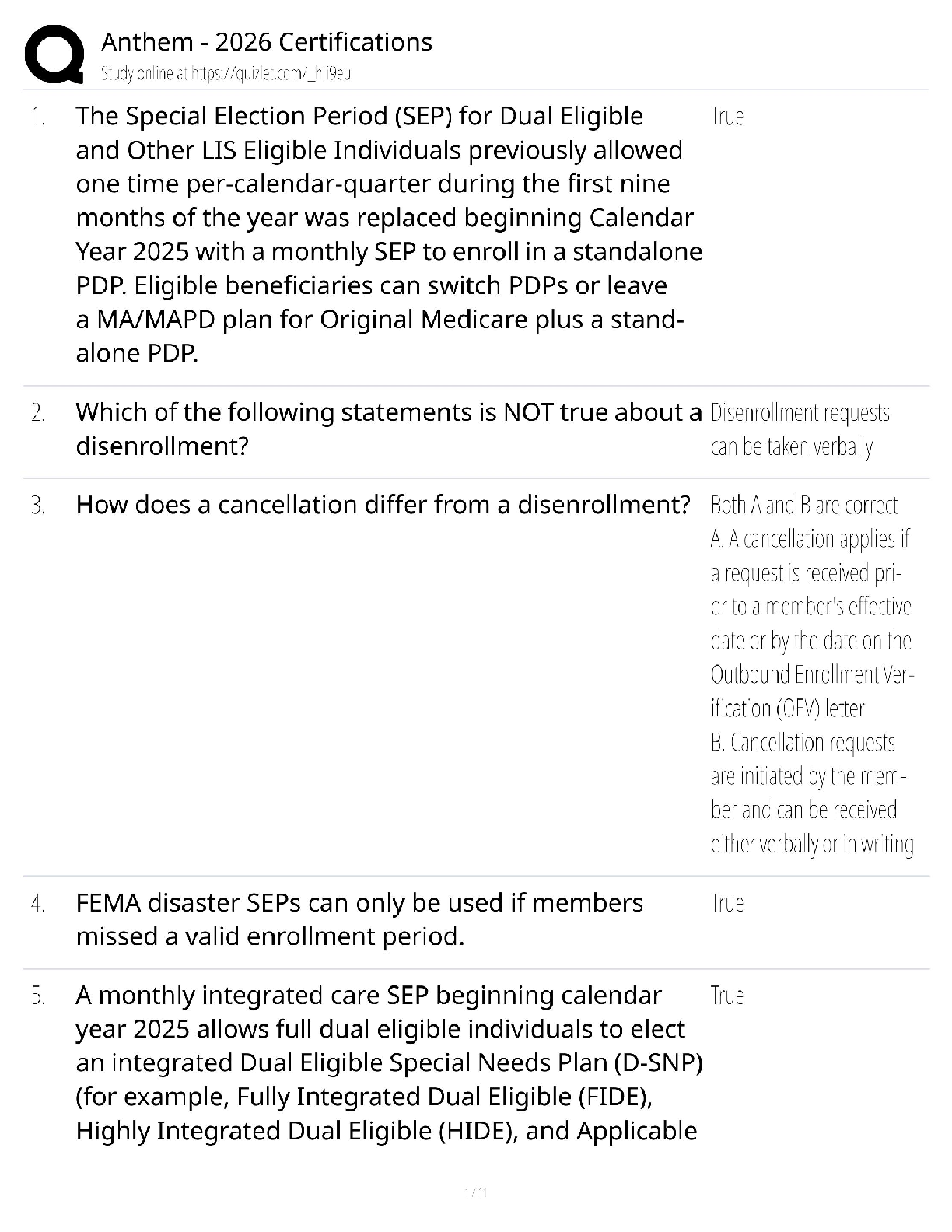 Get ready to ace your 2026 AHIP and Anthem certifications with our latest, all-inclusive test bank. This detailed study guide provides a complete set of questions and verified answers, covering all critical topics you'll face on the exam. Master complex subjects such as Special Election Periods (SEP) for Dual Eligible individuals, FEMA disaster SEPs, disenrollment procedures, and Dual Eligible Special Needs Plans (D-SNP). Our expertly compiled resource is your key to understanding the material thoroughly and passing your certification exam on the very first attempt. Stop worrying about resits and start your successful career path today!