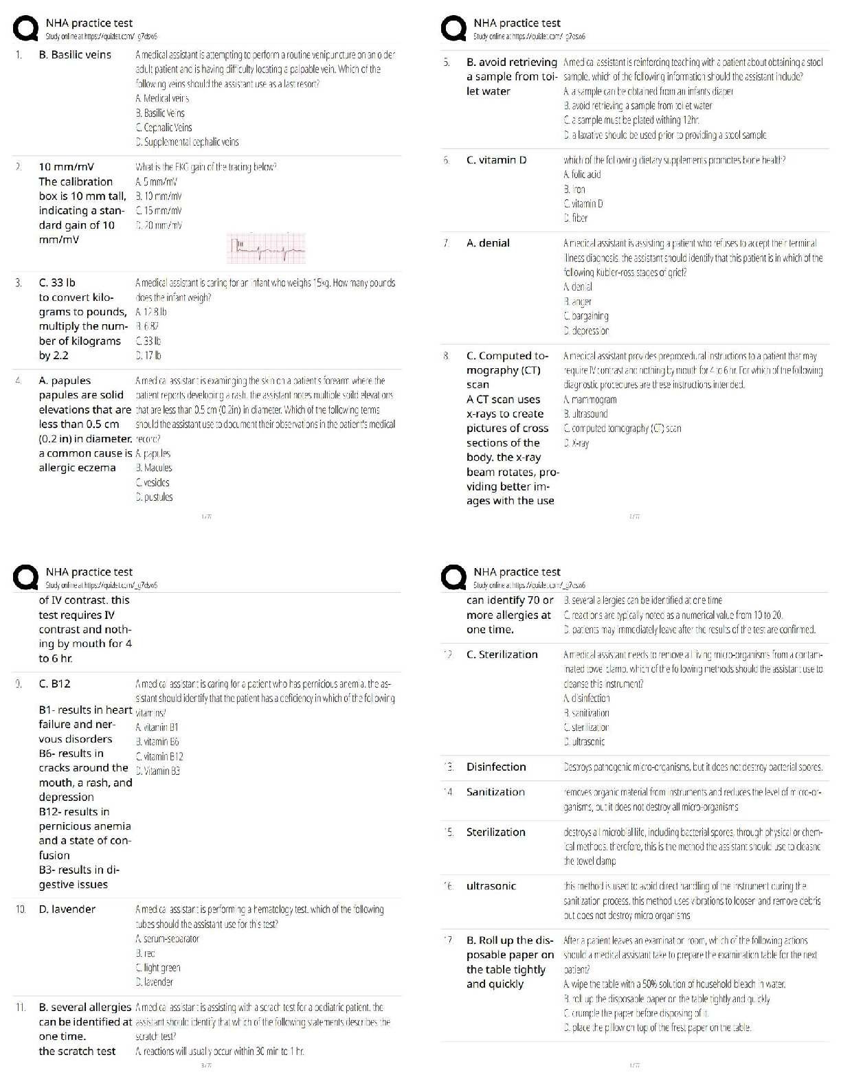 Prepare for your National Healthcareer Association (NHA) Certified Clinical Medical Assistant (CCMA) exam with our comprehensive practice test bank for the 2025-2026 academic year. This essential study tool is packed with a wide range of multiple-choice questions and detailed answers, meticulously designed to cover all critical areas of the CCMA curriculum. Topics include clinical procedures like venipuncture and EKG interpretation, patient care and communication, medical terminology, safety and infection control, and administrative tasks. By simulating the actual exam format, this resource helps you identify your strengths and weaknesses, build confidence, and master the material needed to pass your certification on the first attempt. Avoid resits and fast-track your career as a Medical Assistant with this up-to-date and reliable study guide.