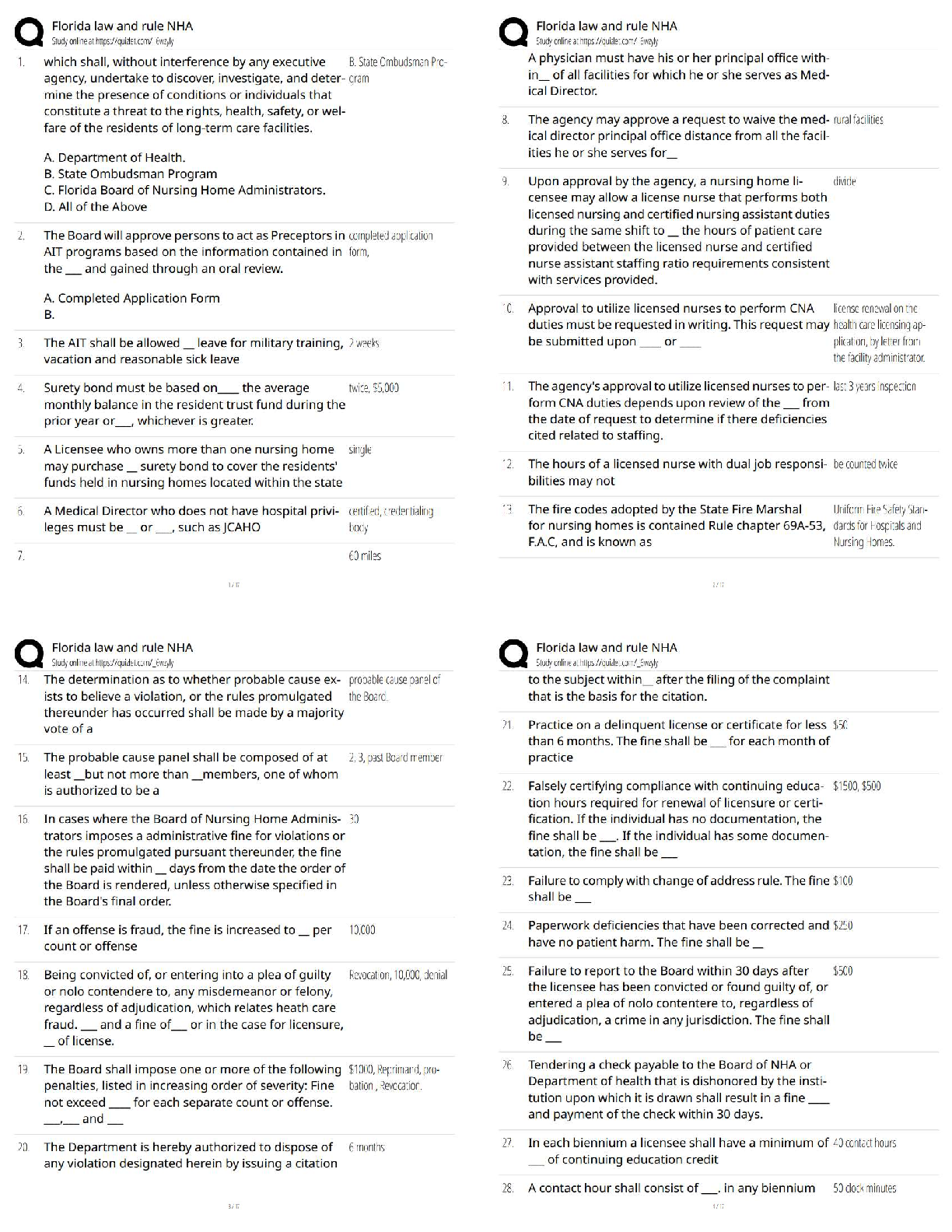 Florida NHA Law and Rule Test Bank 2025/2026 | Verified Questions & Answers for Nursing Home Administrator Exam Success