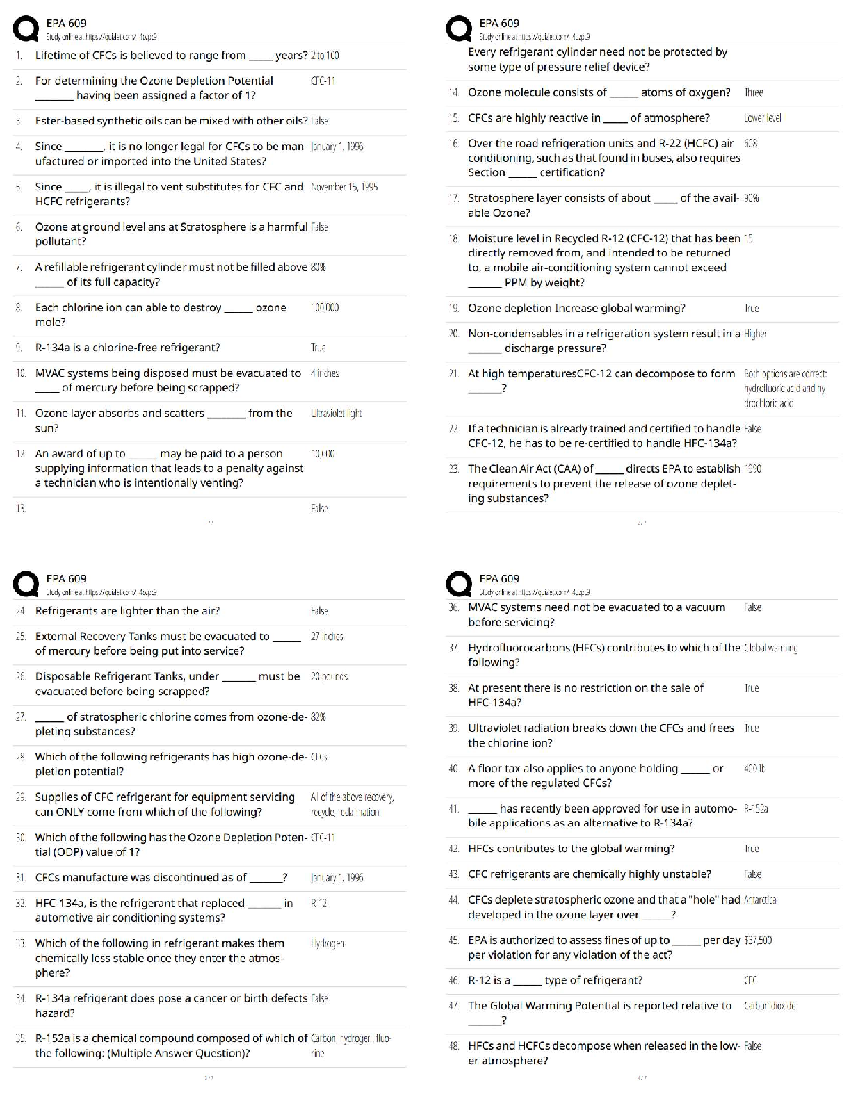 Get ready to pass your EPA 609 Technician Certification exam with confidence! This comprehensive test bank provides an extensive collection of practice questions and verified answers, covering all essential topics. Our study guide delves into refrigerant handling, ozone depletion, CFCs, HFCs, the Clean Air Act regulations, and safety protocols. Each question is designed to mirror the actual exam, ensuring you are fully prepared. Don't waste time with incomplete resources—use our proven test bank to master the material and earn your EPA 609 certification on your very first try.