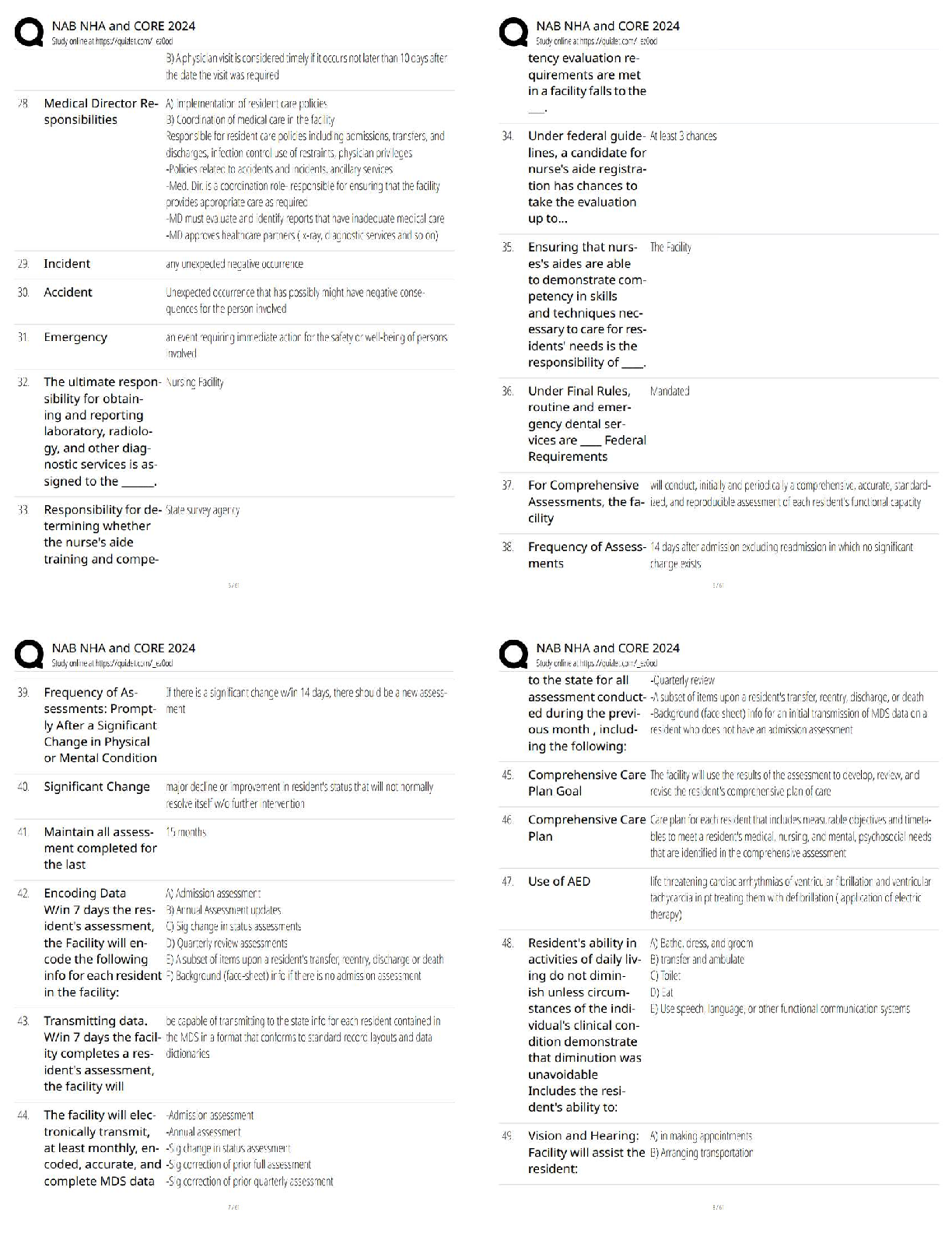 Master the Nursing Home Administrator (NHA) certification with our ultimate study guide for the NAB CORE of Knowledge 2024 exam. This detailed test bank provides in-depth coverage of all essential domains, from Resident Care & Rights and Quality Assurance to Infection Control and Facility Management. Each topic is broken down into easy-to-understand points, covering critical areas like weight loss assessment, abuse prevention, and food safety standards. This guide is expertly designed to streamline your study process, helping you grasp key concepts quickly to pass your exam on the first try. Secure your success in long-term care administration with this indispensable 2024 resource.