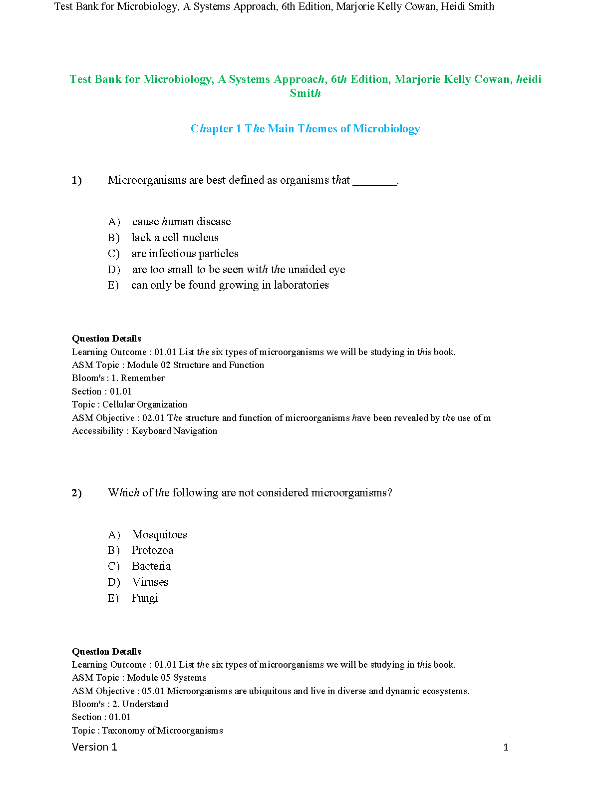Official Test Bank for Microbiology: A Systems Approach, 6th Edition by Marjorie Kelly Cowan and Heidi Smith