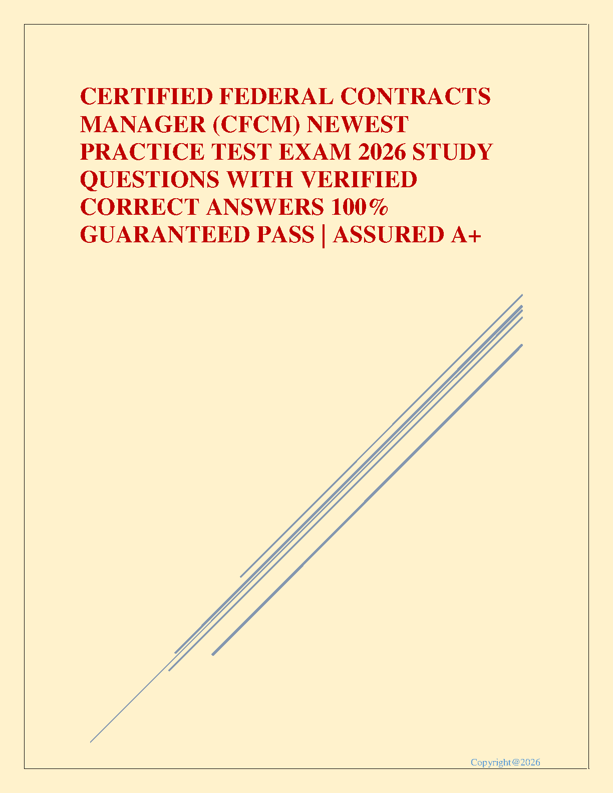 Ace your Certified Federal Contracts Manager (CFCM) certification with our latest 2026 practice exam. This comprehensive test bank features a complete set of study questions with 100% verified correct answers, meticulously designed to cover all key areas of the CFCM exam. Prepare effectively, master the material, and boost your confidence to pass on your first try and earn your CFCM credential.