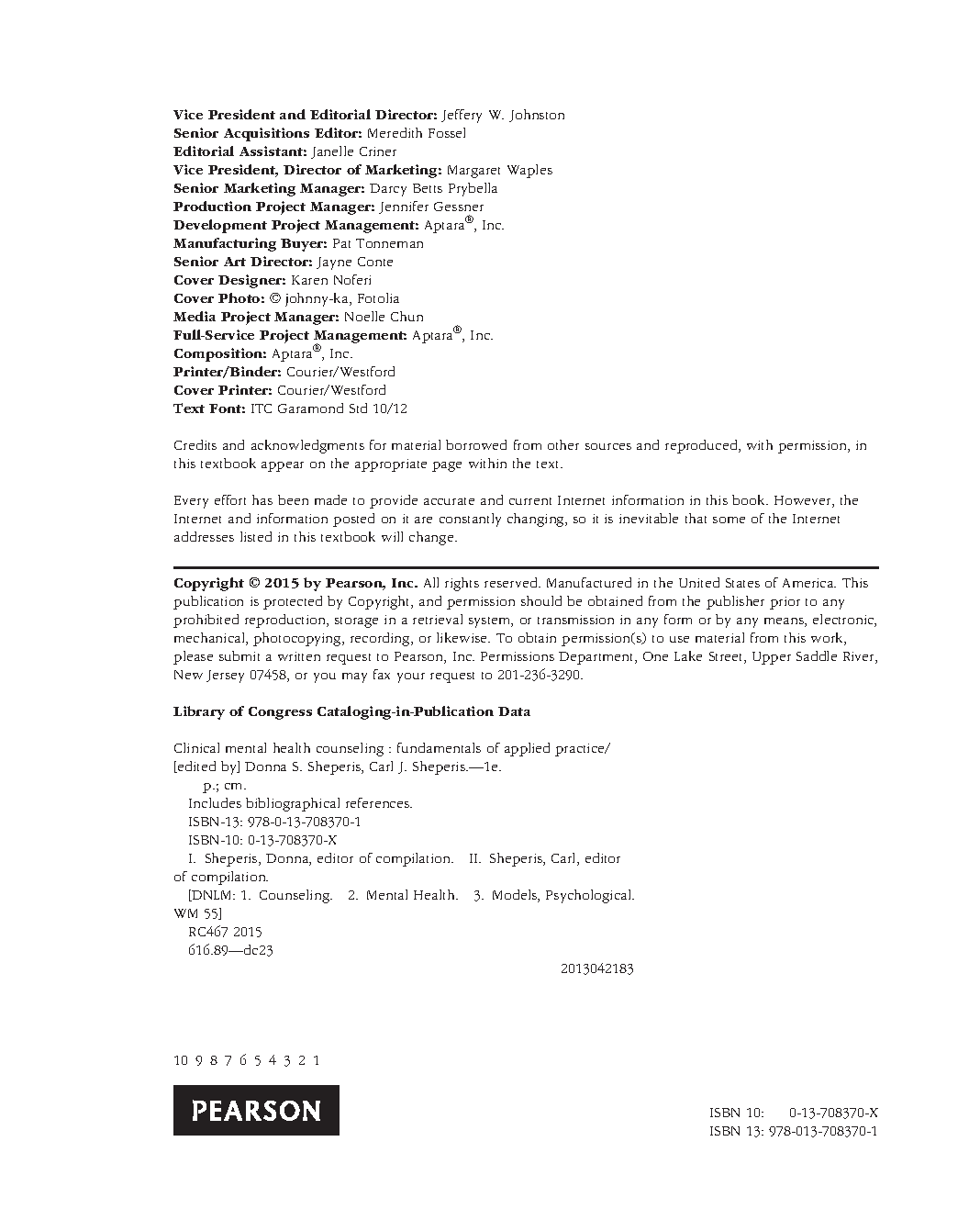 Test Bank for Clinical Mental Health Counseling: Fundamentals of Applied Practice, 3rd Edition by Donna S. Sheperis, Carl J. Sheperis, Michael T. Tysinger