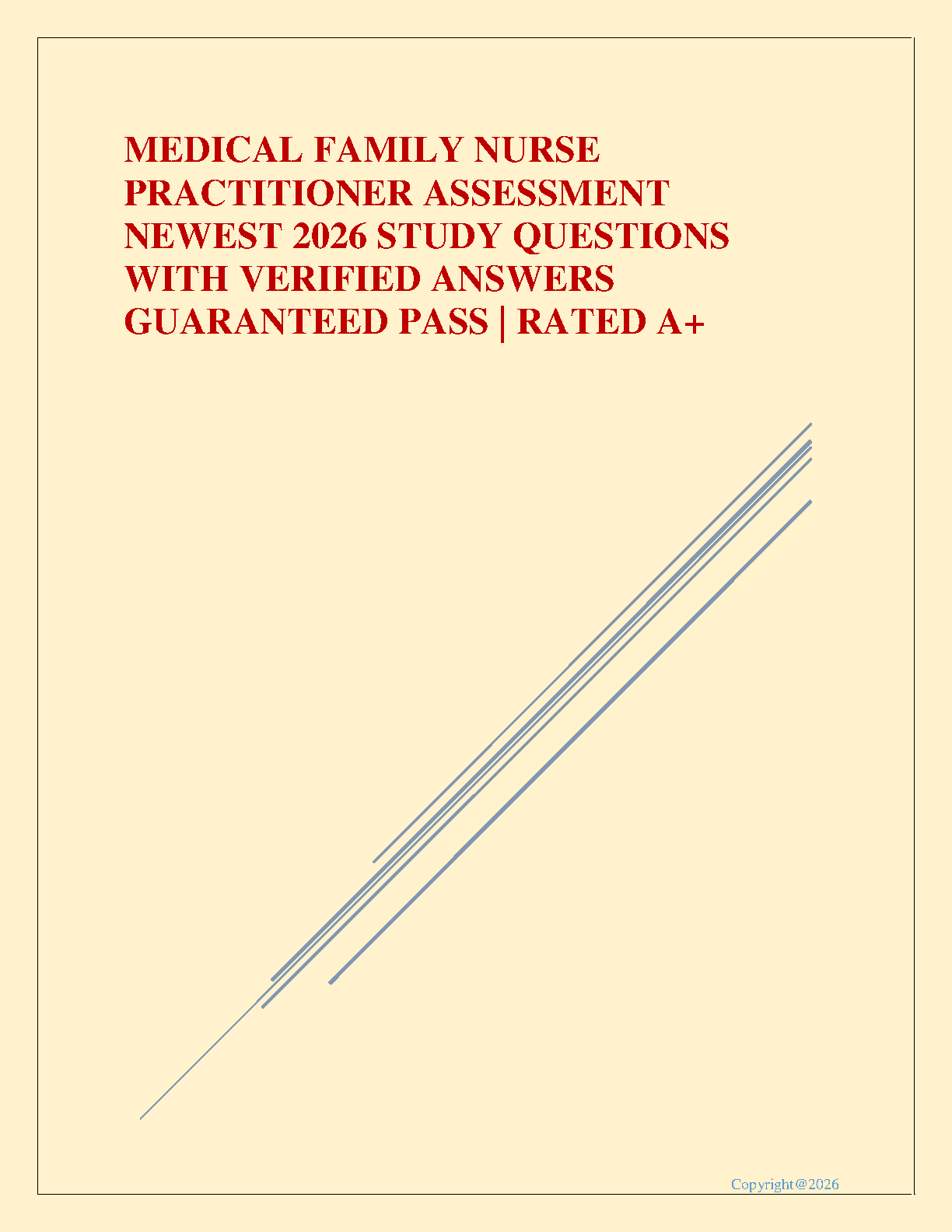 Medical Family Nurse Practitioner Assessment Test Bank 2025/2026 | Newest Edition with Verified Questions and Answers for a Guaranteed Pass