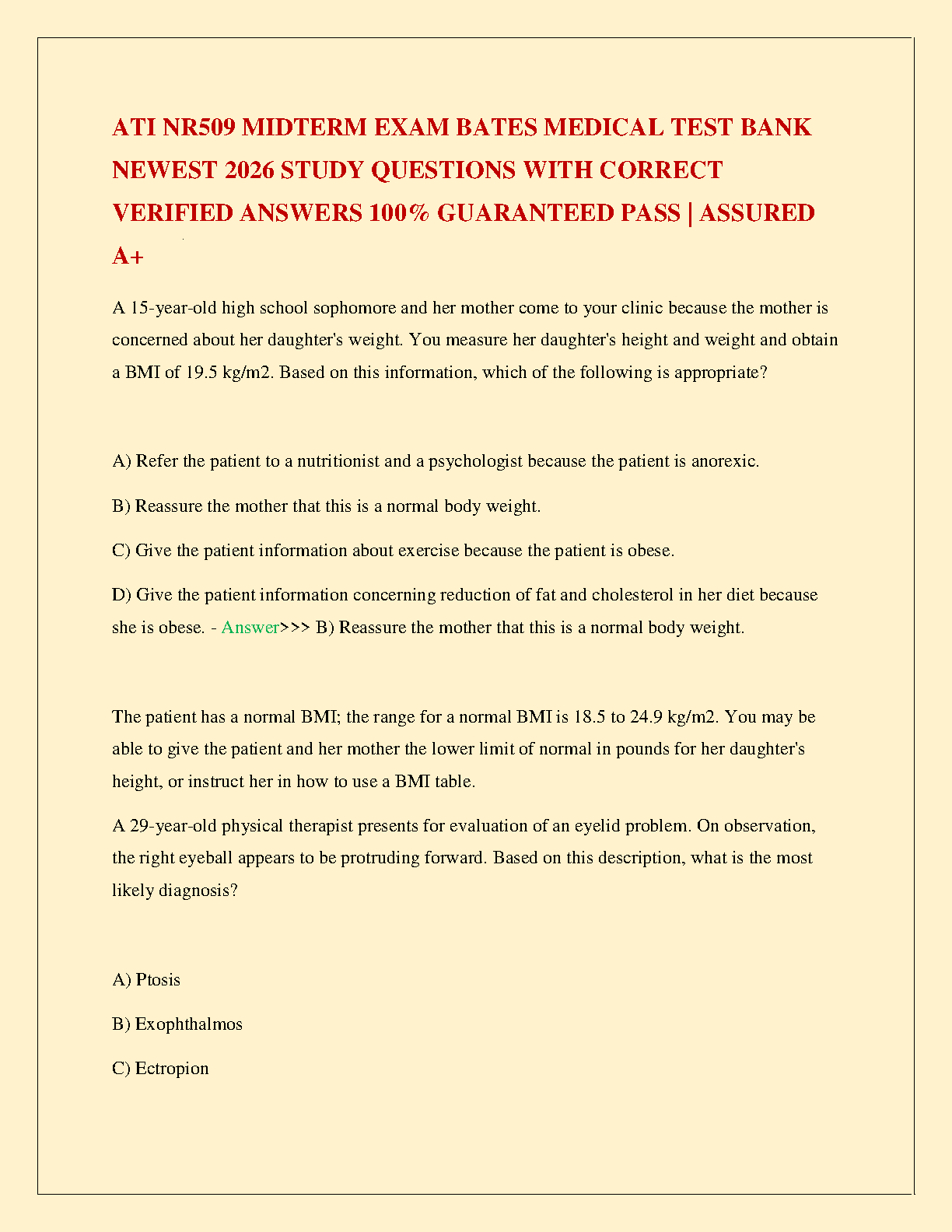 Ace your ATI NR509 Midterm Exam with this comprehensive test bank for 'Bates' Guide to Physical Examination and History Taking,' 13th Edition by Lynn S. Bickley, Peter G. Szilagyi, and Richard M. Hoffman. This 2026 updated resource provides a complete set of study questions with 100% correct, verified answers, designed to cover all key concepts for the midterm. Master the material, boost your confidence, and secure an A+ grade. This essential study tool is your key to passing the exam on your first try.