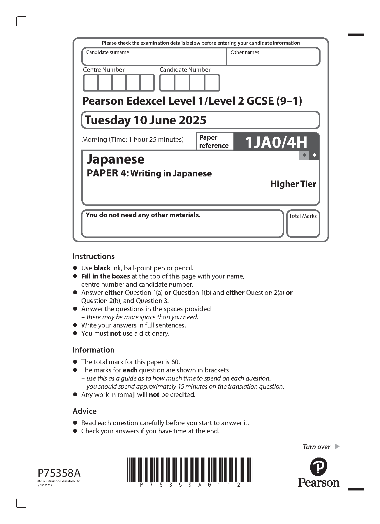 MERGED 2025 Pearson Edexcel GCSE Japanese Paper 1F Question Paper and Mark Scheme (1JA0/1F: Listening and understanding in Japanese Foundation tier)