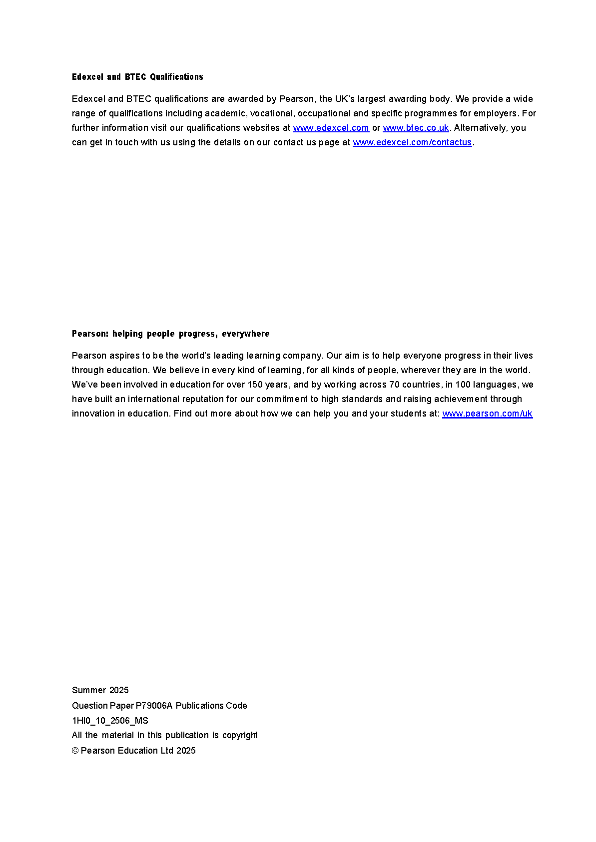 MERGED 2025 Pearson Edexcel GCSE History Paper 1 and Mark Scheme (1HI0/10: Thematic study and historic environment)