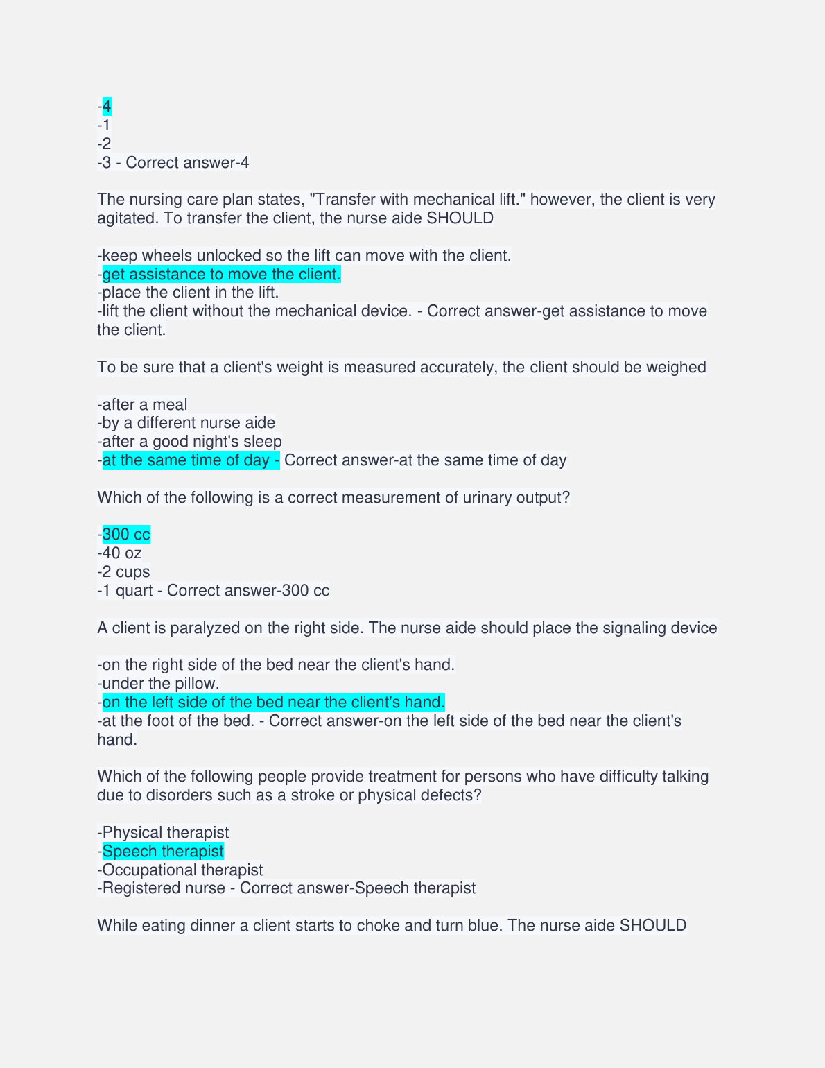 CNA Practice Written Exam Questions and Answers 2023/2024
