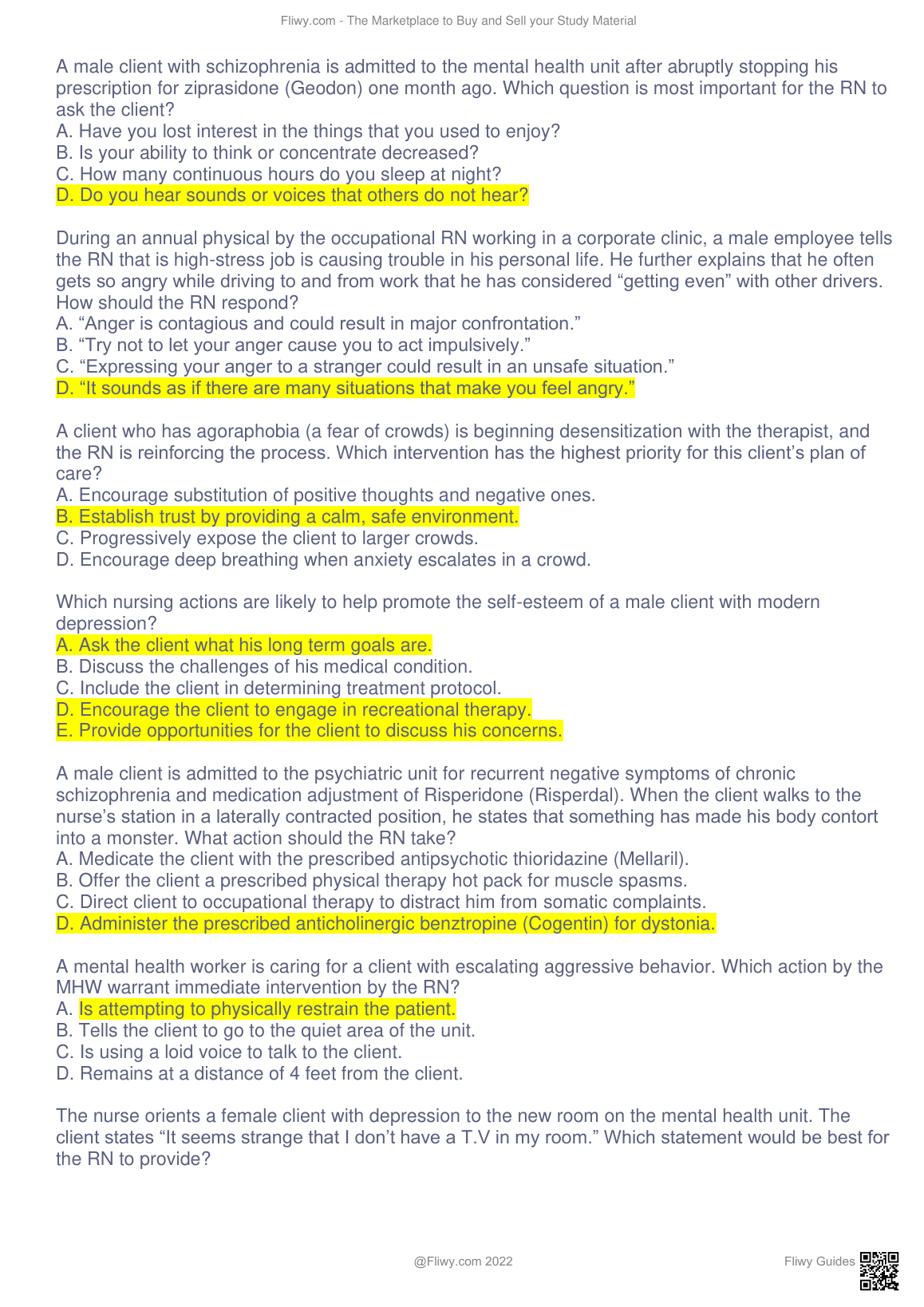 2022 – 2023 HESI MENTAL HEALTH RN V1-V3 TEST BANKS (ALL TOGETHER) UPDATED 2023