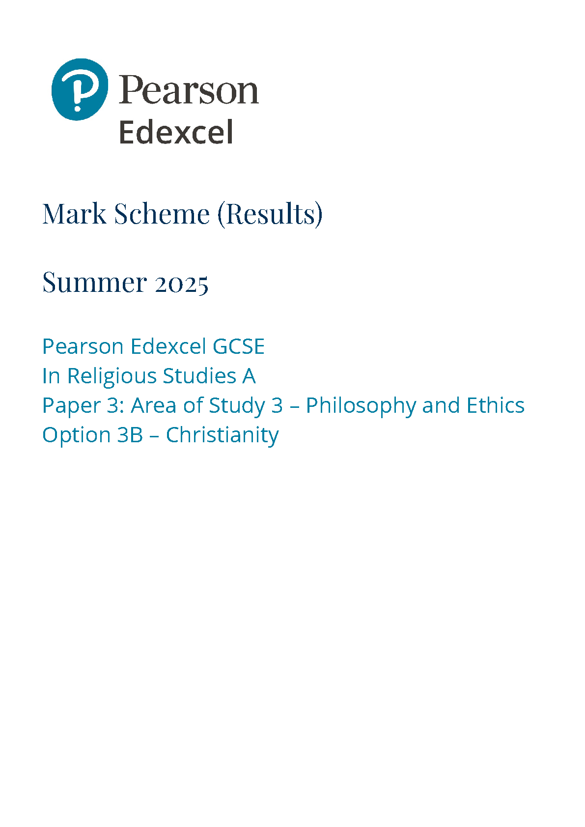 PEARSON EDEXCEL GCSE RELIGIOUS STUDIES A PAPER 3 OPTION 3B 2025 MARK SCHEME (1RA0/3B: Area of Study 3 Philosophy and Ethics Option 3B – Christianity). DOWNLOAD this verified paper on www.hackedexams.com and access the PDF INSTANTLY!!!