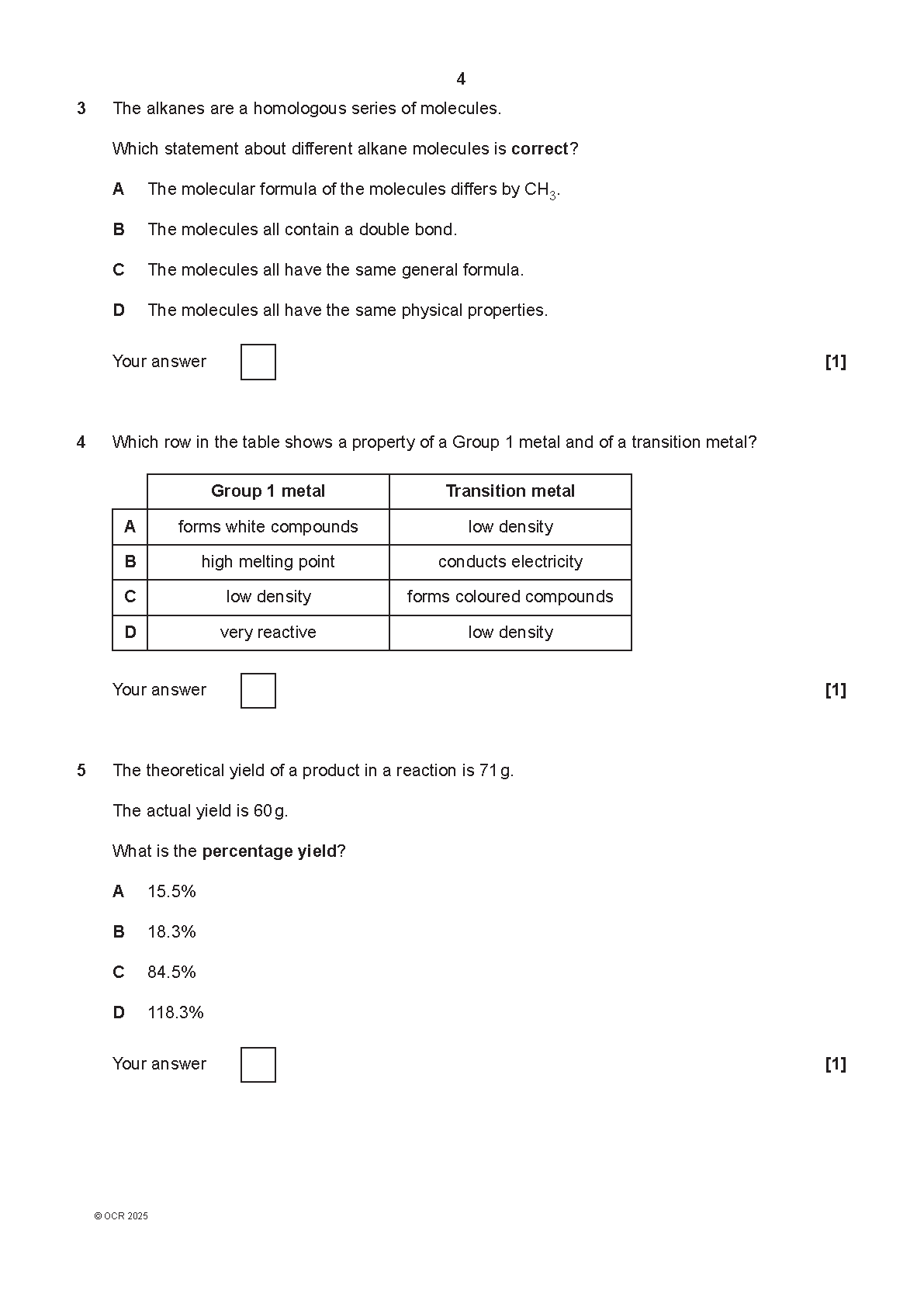 OCR GCSE CHEMISTRY A PAPER 4 HIGHER TIER 2025
