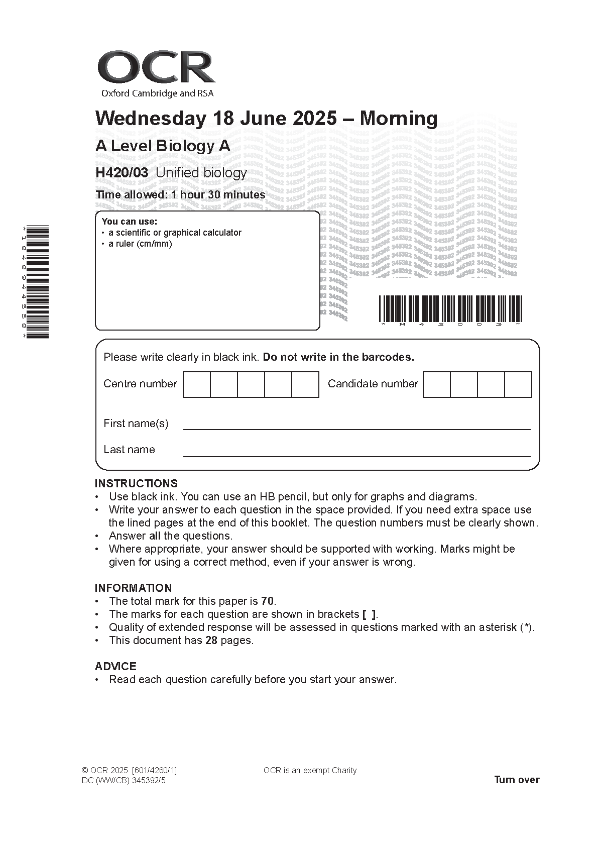 OCR A LEVEL BIOLOGY A PAPER 3 2025 (H420/03: Unified biology). DOWNLOAD this verified paper on www.hackedexams.com and access the PDF INSTANTLY!!!