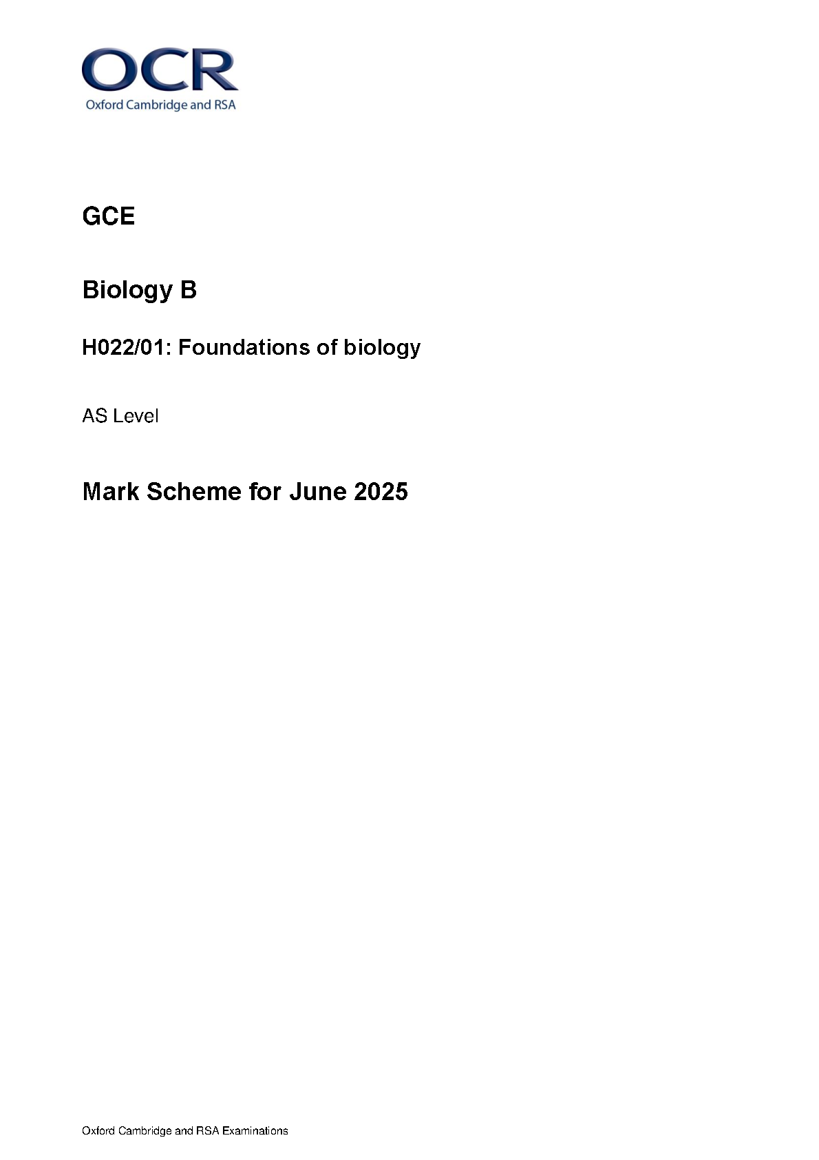 OCR AS BIOLOGY B PAPER 1 2025 MARK SCHEME (H022/01: Foundations of biology). DOWNLOAD this verified paper on www.hackedexams.com and access the PDF INSTANTLY!!!
