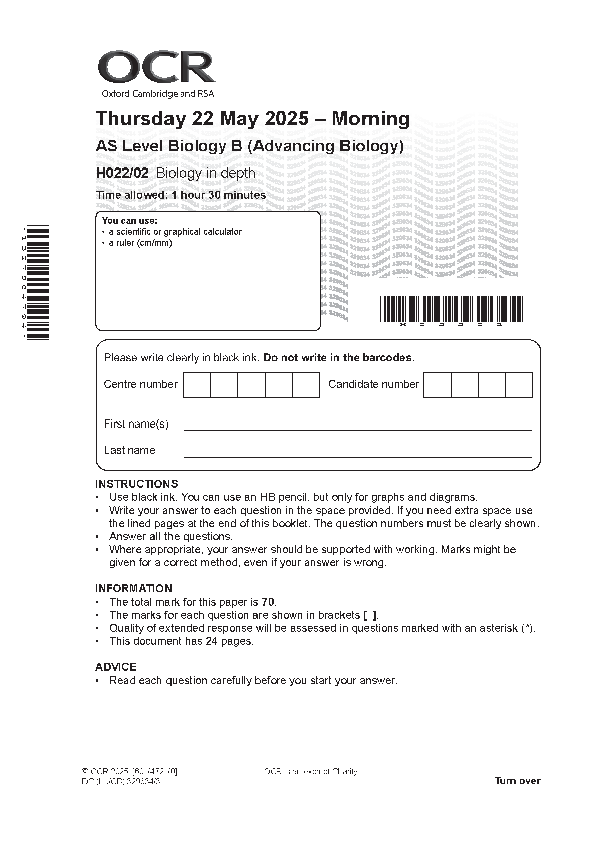 OCR AS BIOLOGY B PAPER 2 2025 (H022/02 Biology in depth). DOWNLOAD this verified paper on www.hackedexams.com and access the PDF INSTANTLY!!!