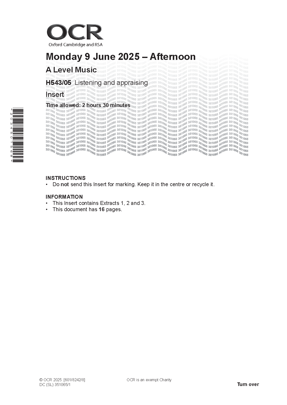 OCR A LEVEL MUSIC PAPER 5 2025 INSERT (H543/05: Listening and appraising). DOWNLOAD this verified paper on www.hackedexams.com and access the PDF INSTANTLY!!!