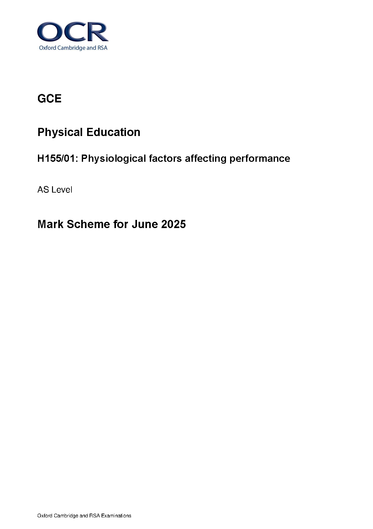 OCR AS PHYSICAL EDUCATION PAPER 1 2025 MARK SCHEME (H155/01: Physiological factors affecting performance). DOWNLOAD this verified paper on www.hackedexams.com and access the PDF INSTANTLY!!!