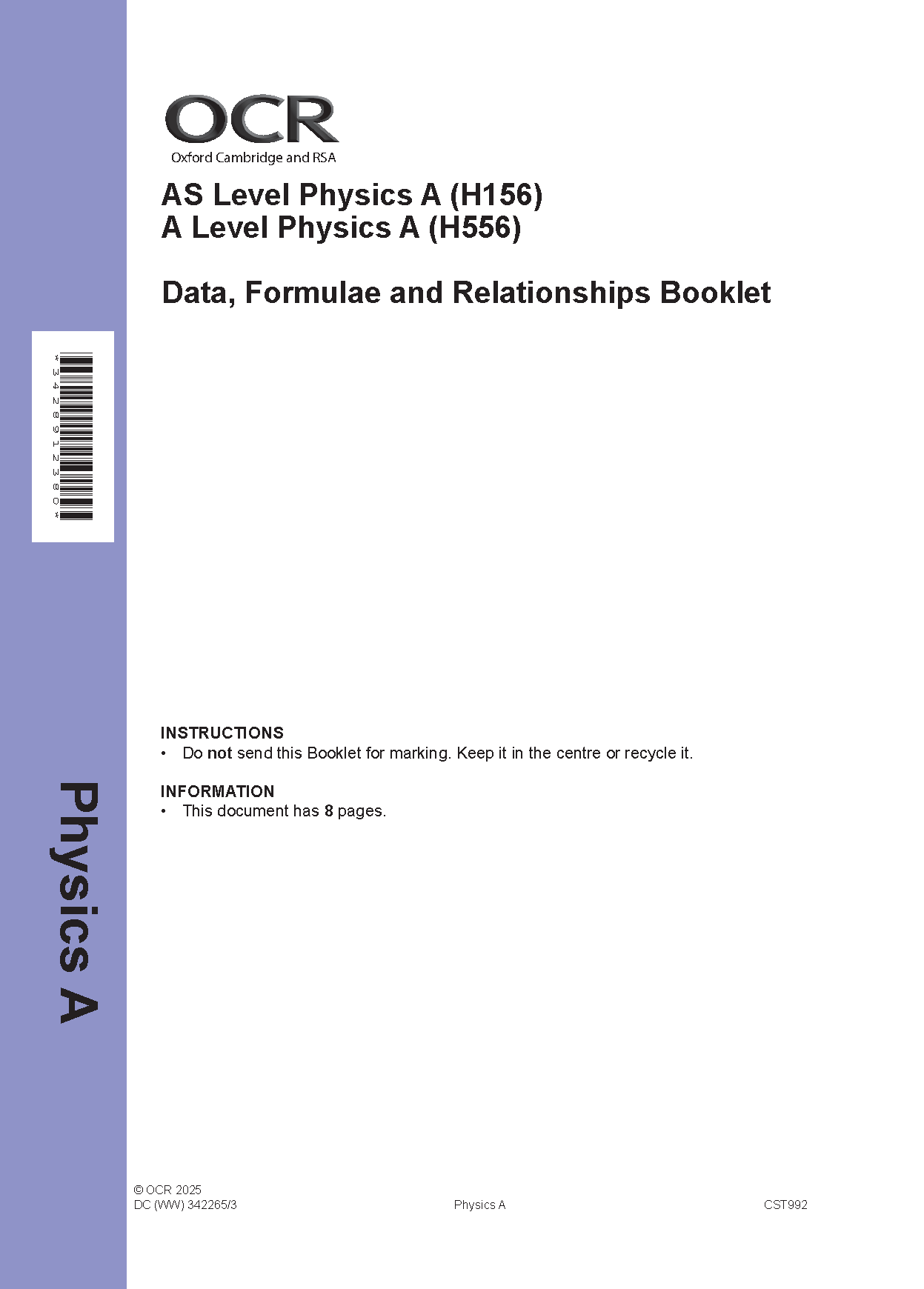 OCR AS AND A LEVEL PHYSICS A PAPER 1 2025 INSERT